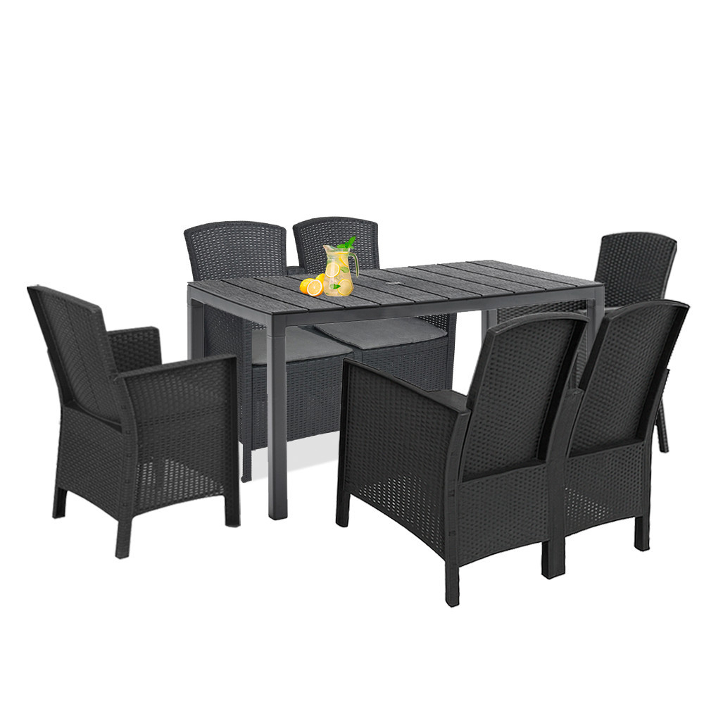 Set de grădină Lima IX 6 locuri din plastic cu efect de rattan în grafit