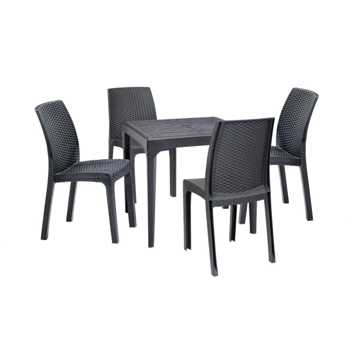 Designul modern și elegant al setului Malinda impresionează. Plasticul de culoarea grafitului oferă un aspect elegant și atemporal , care va rămâne frumos mulți ani. Liniile simple și designul curat vor înveseli orice grădină sau terasă și vor adăuga un stil unic.