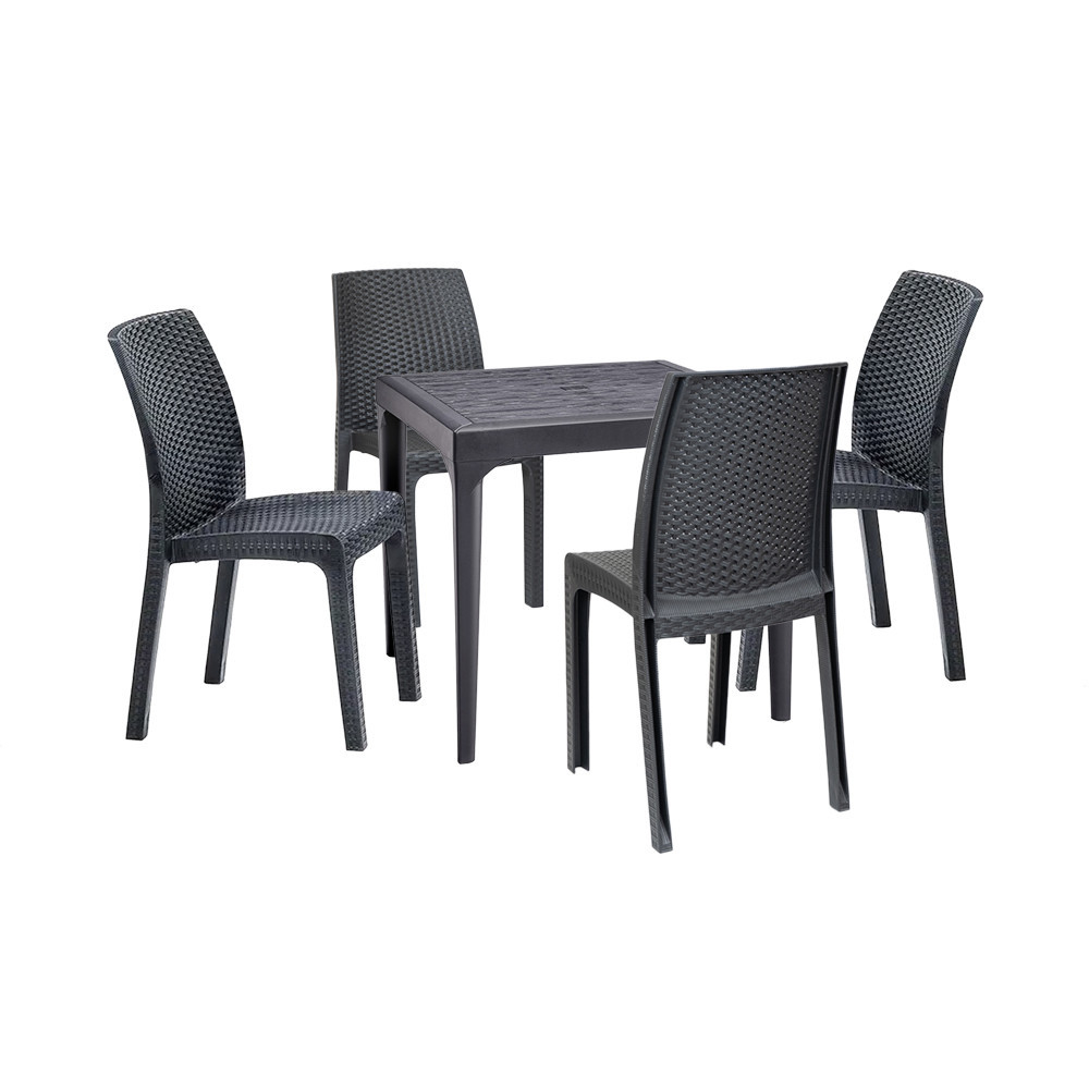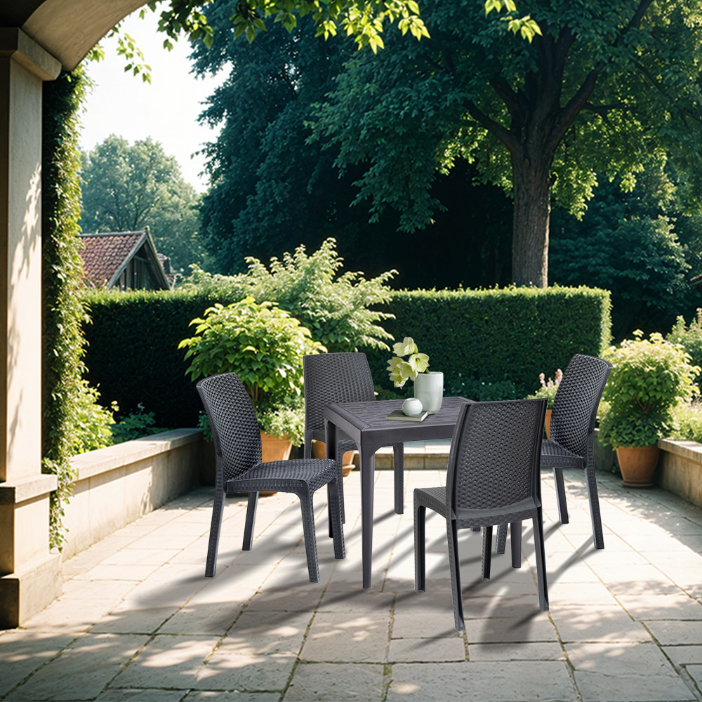 Această masă de grădină Malina din plastic, de culoare grafit, confortabilă și elegantă, cu dimensiunile de 80x80x74 cm înălțime, este fabricată în Italia. Ușor de asamblat, nu necesită cunoștințe profesionale. Este durabil și poate rezista bine la condițiile meteorologice, așa că te poți baza pe el ani de zile. Este ușor de transportat, așa că îl poți muta cu ușurință oricând.