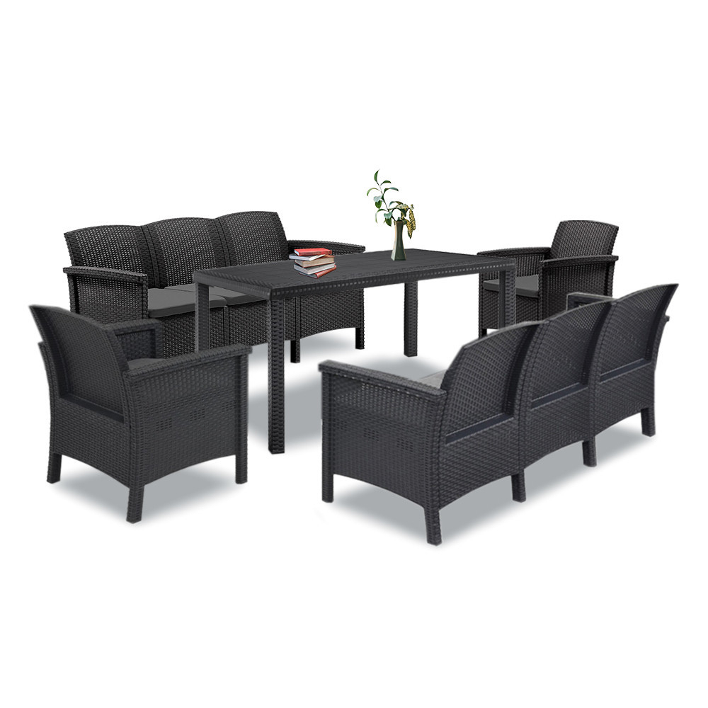 Acest set de mobilier include două scaune de grădină din plastic Venus și o masă de grădină din plastic Odina , 2 canapele de grădină Venus cu 3 locuri , care împreună vor satisface toate așteptările dumneavoastră în ceea ce privește confortul, funcționalitatea și stilul.