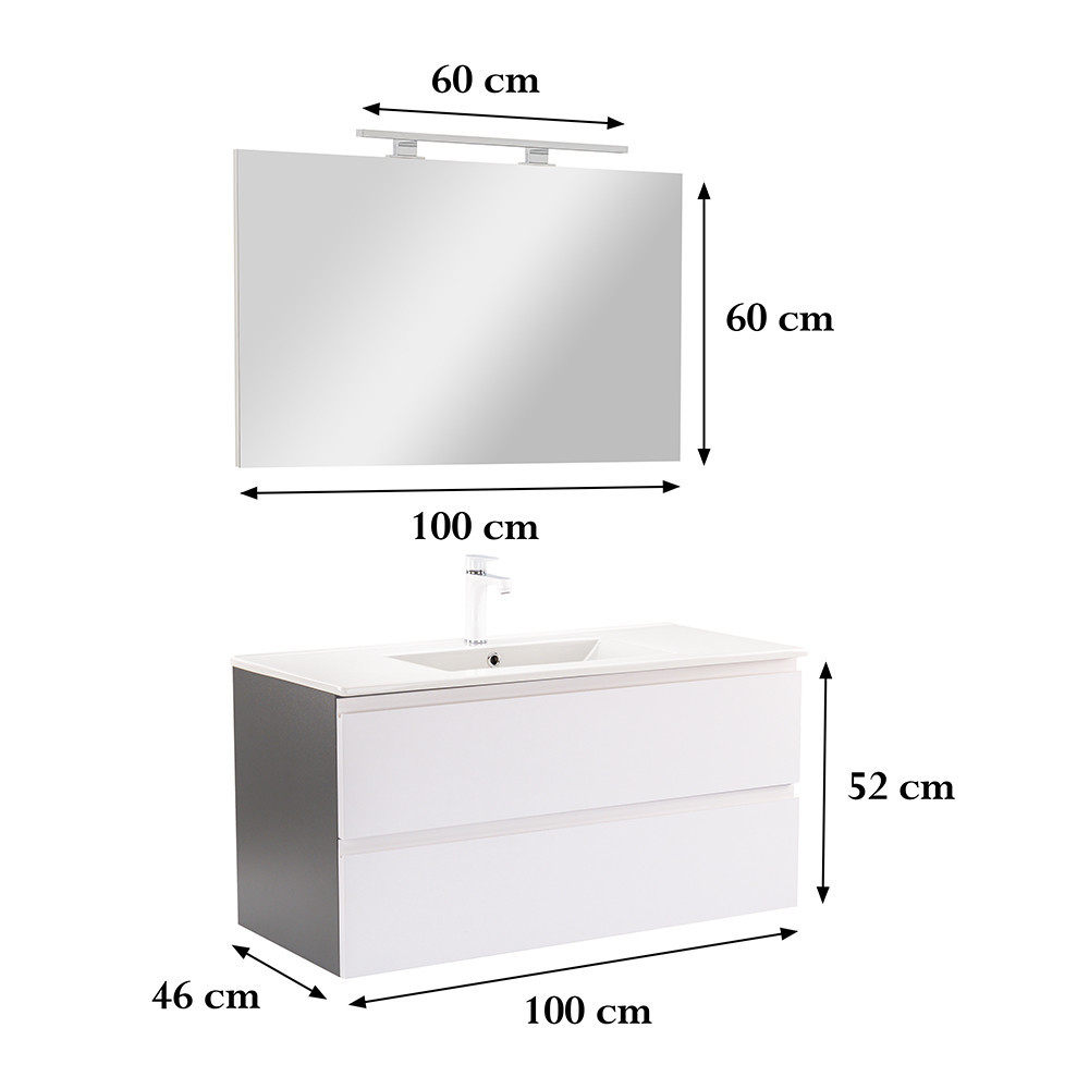 Mobilierul de baie complet Vario Pull 100 este o alegere elegantă și practică pentru băile moderne. Dimensiunile sale compacte îl fac ideal pentru băile mici și medii, iar designul alb antracit conferă spațiului un aspect elegant. Închiderea amortizată a sertarelor și designul suspendat oferă confort și curățare ușoară, în timp ce materialele de calitate asigură o durabilitate îndelungată.