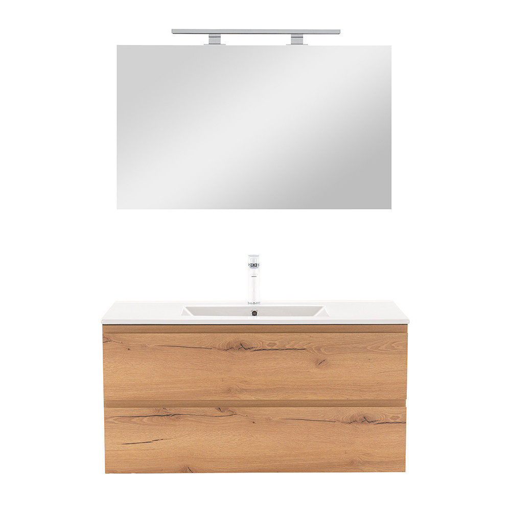 Mobilierul de baie complet Vario Pull 100 este o alegere elegantă și practică pentru băile moderne. Dimensiunile sale compacte îl fac ideal pentru băile mici și medii, iar designul din stejar antracit conferă spațiului un aspect elegant. Închiderea amortizată a sertarelor și designul suspendat oferă confort și curățare ușoară, în timp ce materialele de calitate asigură durabilitate îndelungată.