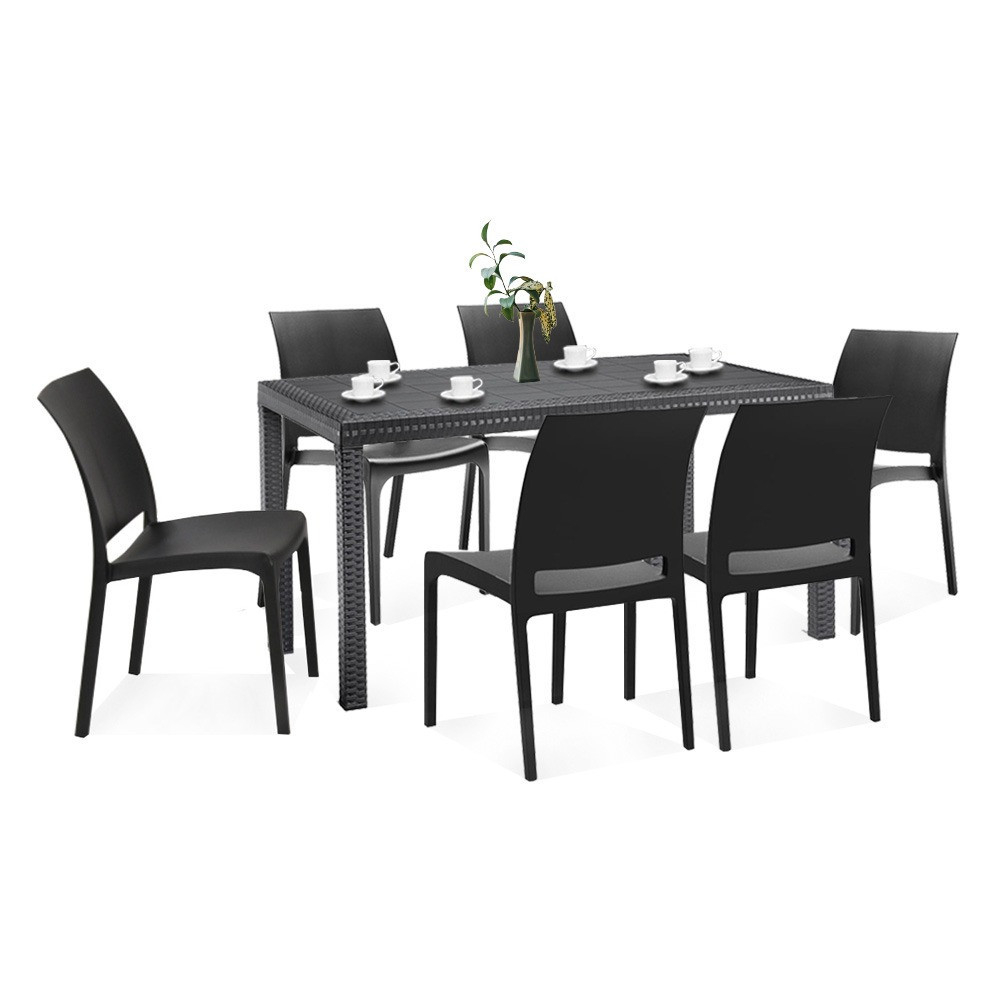 Acest set de mobilier de culoare grafit , confortabil și elegant, este fabricat în Italia. Include șase scaune de 54x 46x 80 cm și o masă pătrată înaltă de 150x 90x 74 cm. Pe lângă dimensiunile și confortul său, poate fi avantajos faptul că asamblarea sa nu necesită cunoștințe profesionale și este ușor de mutat, astfel încât să o puteți pune oricând unde aveți nevoie.