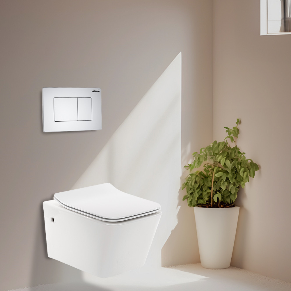 Placa de presiune pentru toaletă Roya 011 este fabricată din plastic ABS, cu proprietăți care includ rezistență la abraziune și curățare ușoară. Produsul este disponibil în culoarea albă pentru a se potrivi cu majoritatea modelelor de baie. Are o lățime de 246 mm și o înălțime de 165 mm, ceea ce îi permite să se potrivească vaselor de toaletă de dimensiuni standard. Are două butoane de apăsare pentru a controla cantitatea de apă de spălare. Instalarea plăcii de apăsare este simplă, rapidă și ușoară.
