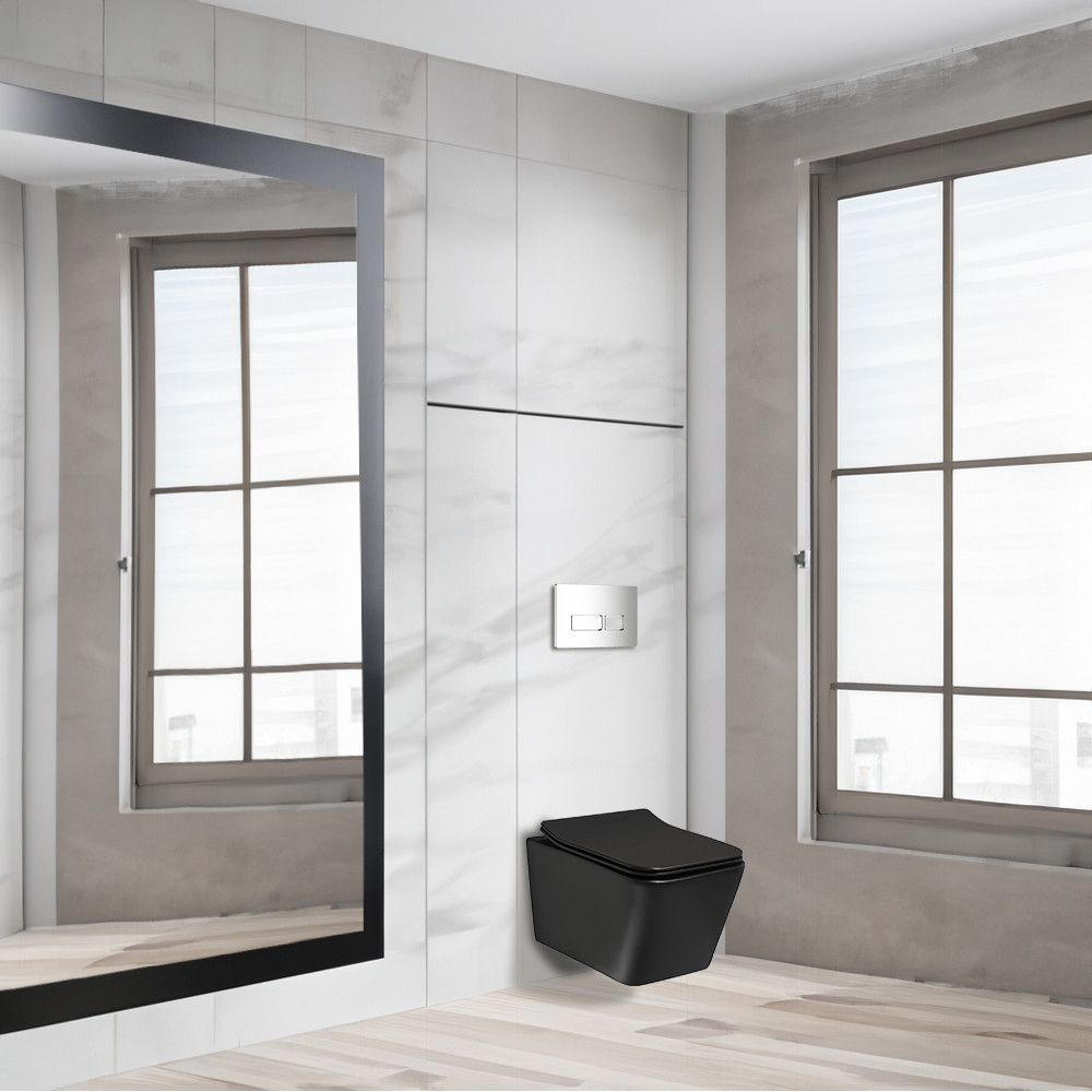 Setul include toaleta Tinos BLM , care este echipată cu un scaun cu închidere silențioasă . Asta înseamnă că capacul de toaletă se închide încet și ușor, fără a se trânti brusc. Această caracteristică asigură confort și liniște, precum și o durată de viață mai lungă a scaunului. Toaleta Tinos este fabricată din ceramică neagră, ușor de curățat și igienică.