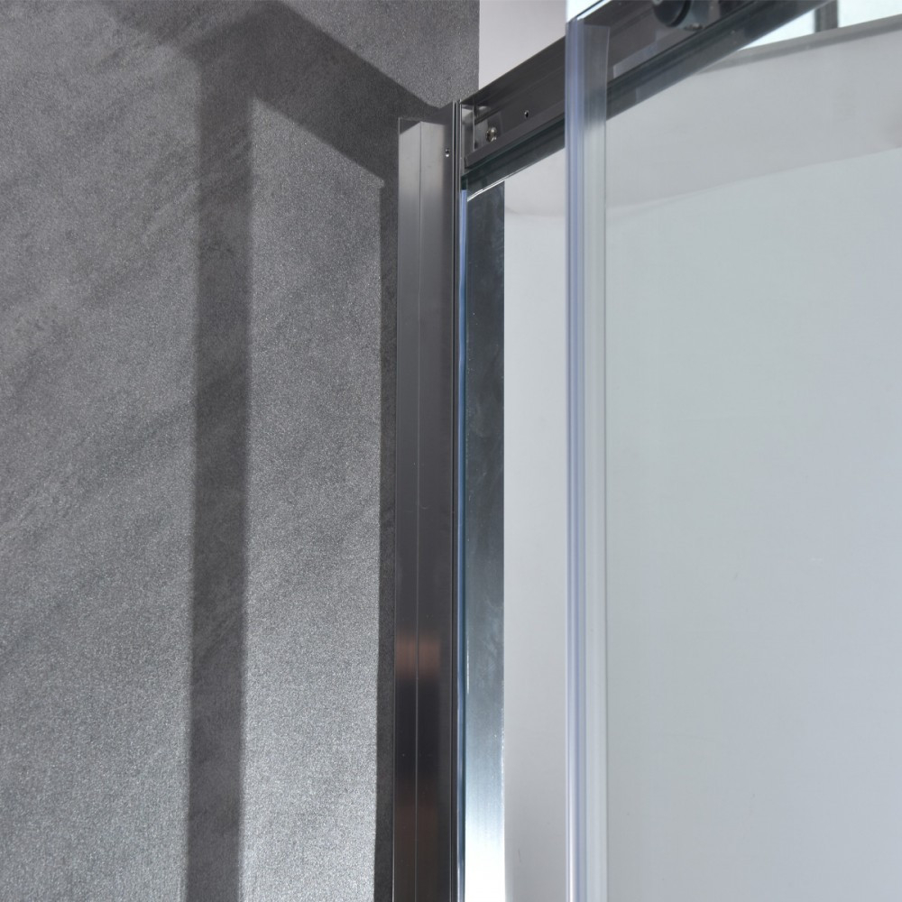 Produsul are o lățime reglabilă de 15 mm pe ambele părți. Ușa de duș este echipată cu un profil din aluminiu cromat și role duble . Poate fi montat universal pe partea dreaptă sau chiar pe partea stângă.
