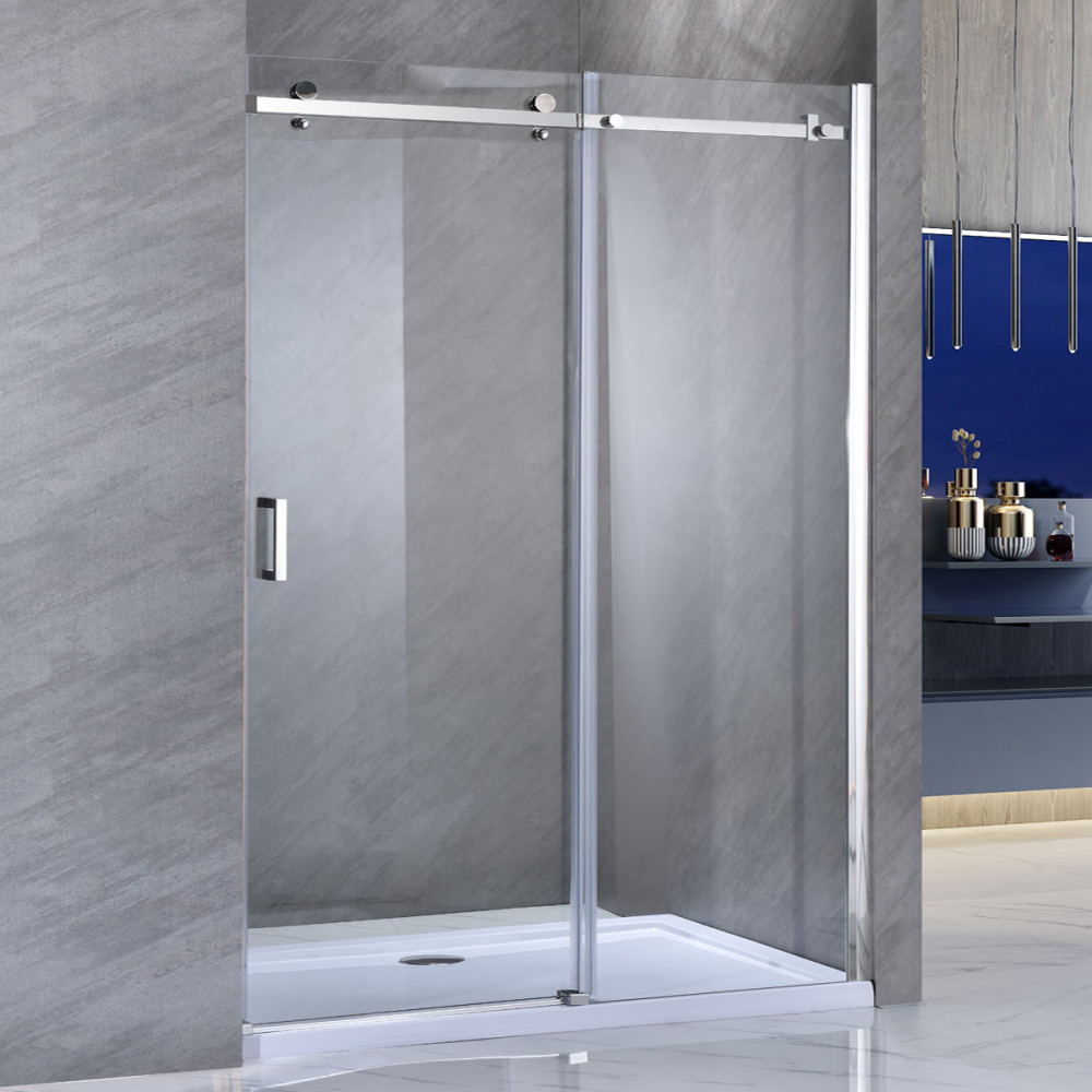 Ușa de duș este echipată cu un profil de perete din aluminiu cromat și sticlă securizată transparentă de 8 mm. Modelul are o lățime de 150 cm și o înălțime de 195 cm.
