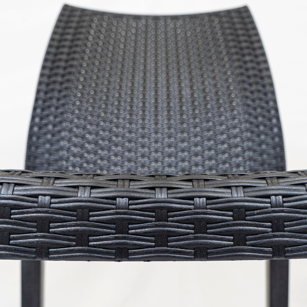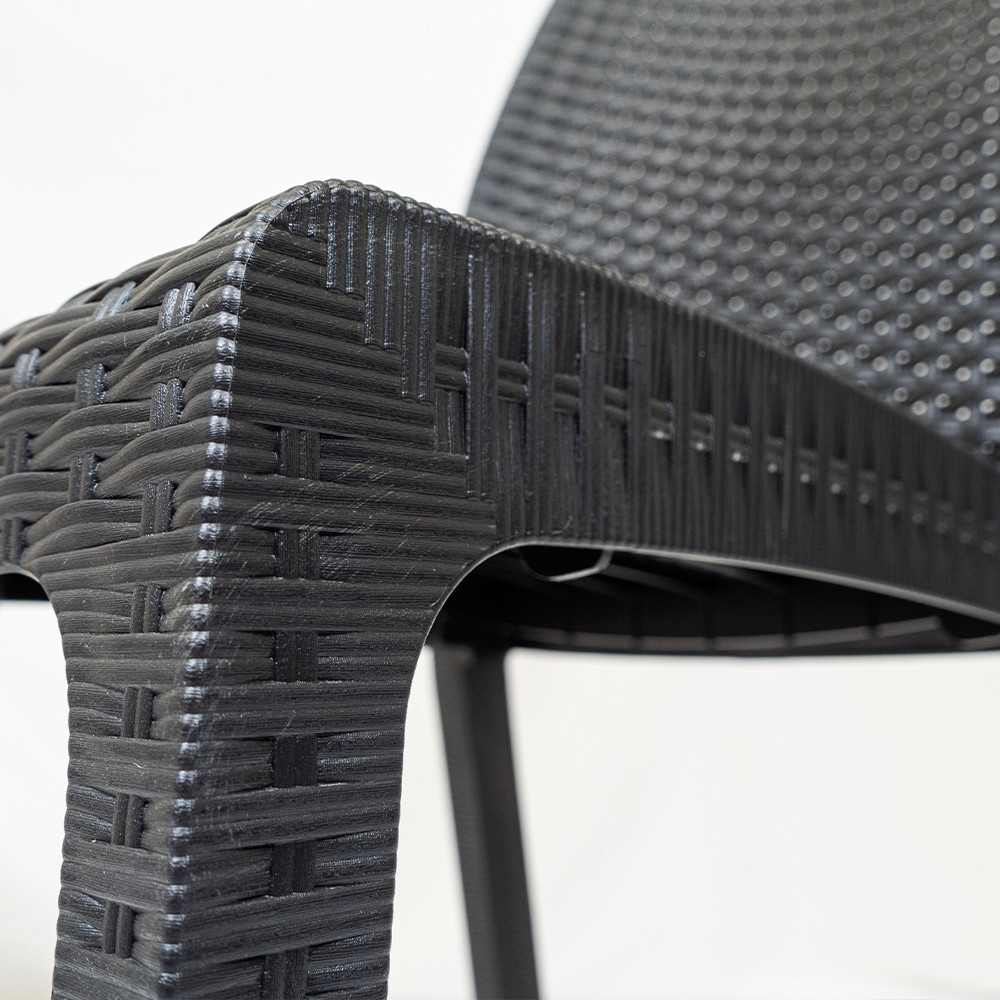 Scaunul este fabricat din polipropilenă plastică, imitând efectul de rattan natural. Acesta are avantajul de a fi un mobilier ușor de mutat, elegant, dar durabil și stabil, astfel încât să îl puteți folosi în siguranță. Plasticul folosit la fabricarea sa este în mare parte reciclat, ceea ce îl face o alegere mai durabilă. Un alt avantaj al mobilierului din rattan este că este impermeabil, rezistent la condițiile meteorologice extreme și la razele UV și ușor de curățat.