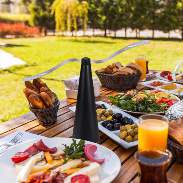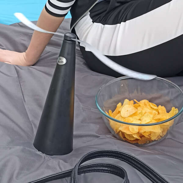 Pestery - Dispozitiv de control al țânțarilor. Ține țânțarii enervanți departe de pielea ta și de biroul tău și bucură-te de timpul petrecut în aer liber! Uitați de spray-urile urât mirositoare și de lumânările neplăcute, alegeți o alternativă fără chimicale - un dispozitiv care folosește un ventilator cu lumini reflectorizante... Împiedicați insectele să vă strice distracția. Fără muște în băuturile sau mâncarea dvs. datorită luminilor reflectorizante care resping dăunătorii! Preveniți înțepăturile neplăcute de țânțari și profitați din plin de timpul petrecut în aer liber... Soluție silențioasă și sigură. Paletele flexibile și moi ale ventilatorului se rotesc silențios și nu deranjează conversația la masă. Acestea sunt proiectate să se oprească atunci când intră în contact cu obiecte sau mâini, astfel încât nu există riscul de tăiere... Protecție portabilă împotriva insectelor oriunde. Ușor și compact, poate fi agățat oriunde, dus în parc, așezat pe masă, scaun sau birou. Țineți insectele departe de mâncarea dvs. în bucătărie, sufragerie, restaurant sau verandă... Configurați-l în câteva secunde. Dispozitivul funcționează cu baterii (2x baterii AA - nu sunt incluse) și poate fi controlat cu un singur buton. Alternativ, puteți utiliza cablul USB furnizat... Acest dispozitiv este complet sigur pentru oameni și mediu, deoarece nu utilizează substanțe chimice în funcționarea sa. Ventilatorul se rotește și reflectă lumina, care respinge insectele... Descriere: :Dispozitiv repelent pentru țânțari... Material: ABS. Dimensiuni: 8,2 x 8,2 x 24 cm. Alimentare: 2x baterii AA (nu sunt incluse), cablu USB.