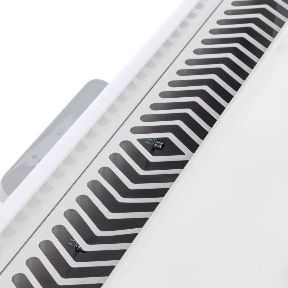 Acest radiator de design nu este doar o sursă de căldură, ci și un element elegant de design interior. Fabricată din sticlă securizată, are un aspect elegant și modern , integrându-se perfect în interioarele elegante. Dioda de control evidențiază subtil designul dispozitivului, făcându-l atât practic, cât și atractiv din punct de vedere vizual. Atât opțiunile independente, cât și cele montate pe perete permit adaptarea flexibilă a dispozitivului la un anumit spațiu interior. Pentru un confort sporit, mânerul de transport vă permite să îl mutați liber între camere . Acest radiator de design este soluția perfectă pentru cei care apreciază combinația dintre funcționalitate și design modern în interioarele lor.