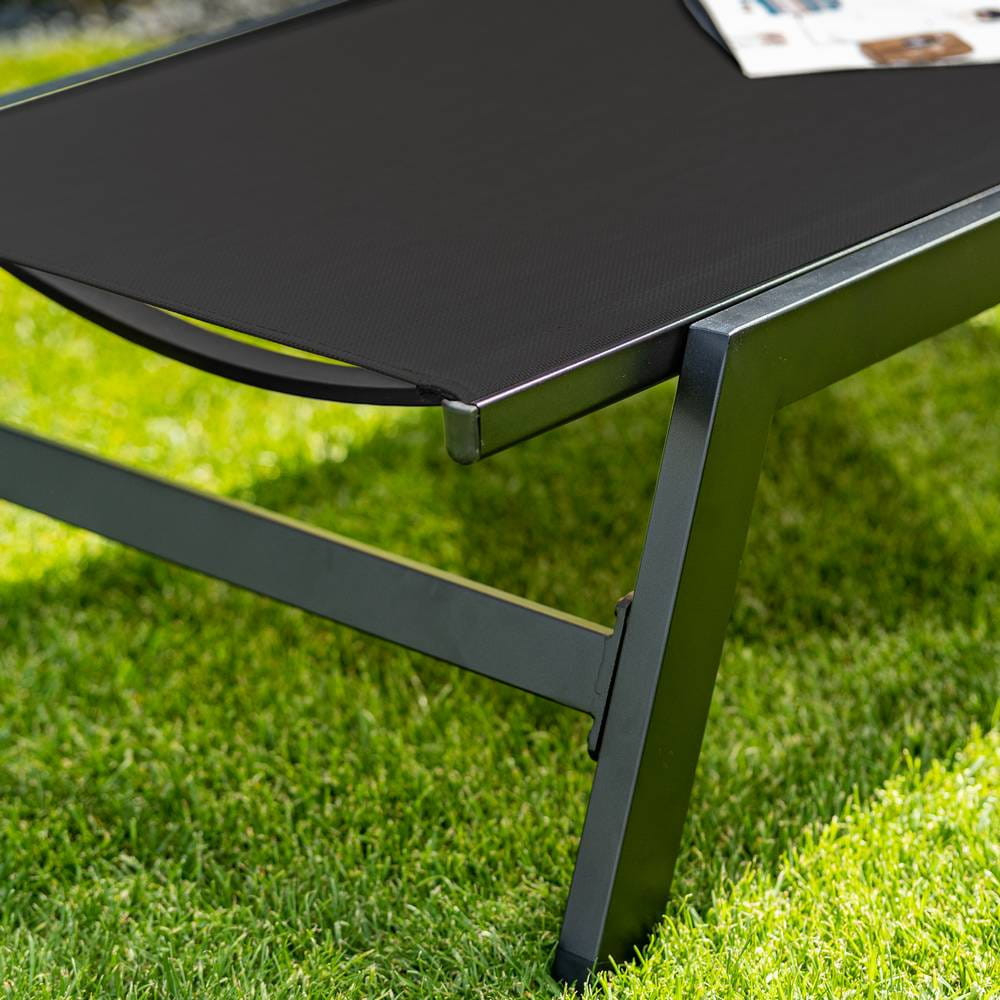 Acest șezlong de grădină cu cadru din aluminiu este foarte rezistent la coroziune , așa că poate fi folosit mai multe sezoane. Datorită opțiunilor de ajustare, oferă o odihnă confortabilă. Designul său modern se potrivește perfect în cele mai la modă terase și grădini.