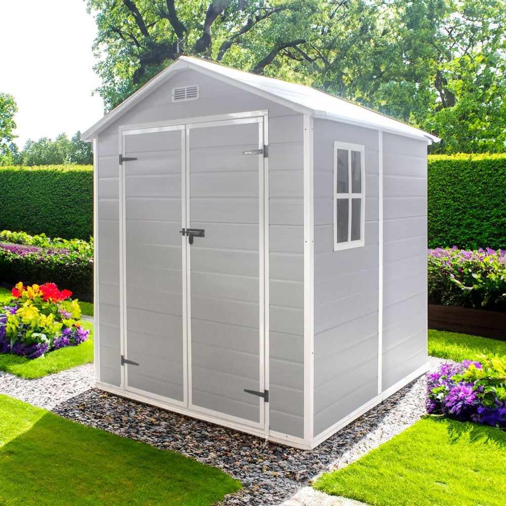 Șopronul pentru unelte de grădină Hesler 6234 este fabricat din materiale rezistente la radiațiile UV și la umiditate.