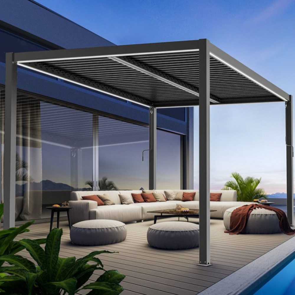 Copertină ușor de instalat de 270 x 218 cm, concepută pentru pergole de 3 x 4 m. Sistemul de pliere electrică