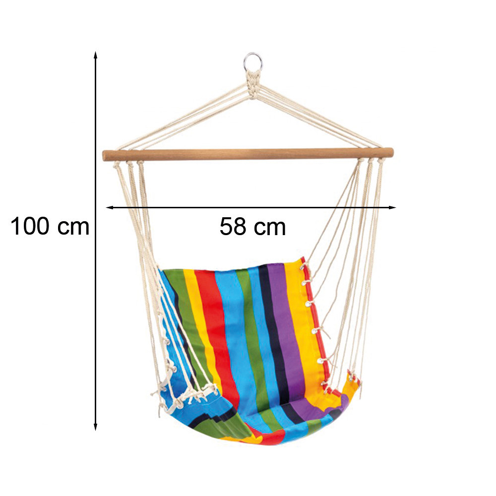 Fotoliul suspendat cu cadru confortabil este fabricat din poliester de înaltă calitate, plăcut la atingere . Cadrul scaunului include o grindă de lemn care îi permite să își mențină forma chiar și atunci când stai așezat. Scaunul suspendat se adaptează perfect formei corpului, ceea ce afectează semnificativ calitatea odihnei. Produsul este perfect pentru un pui de somn de după-amiază, o siestă sau pur și simplu pentru relaxare - atât acasă, cât și în aer liber. Un fotoliu suspendat, disponibil tot anul, vă permite să vă relaxați indiferent de vreme.