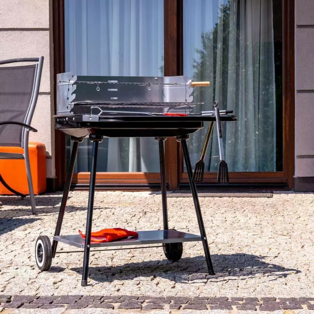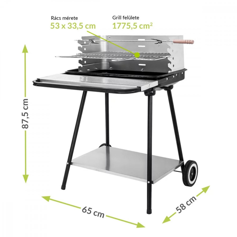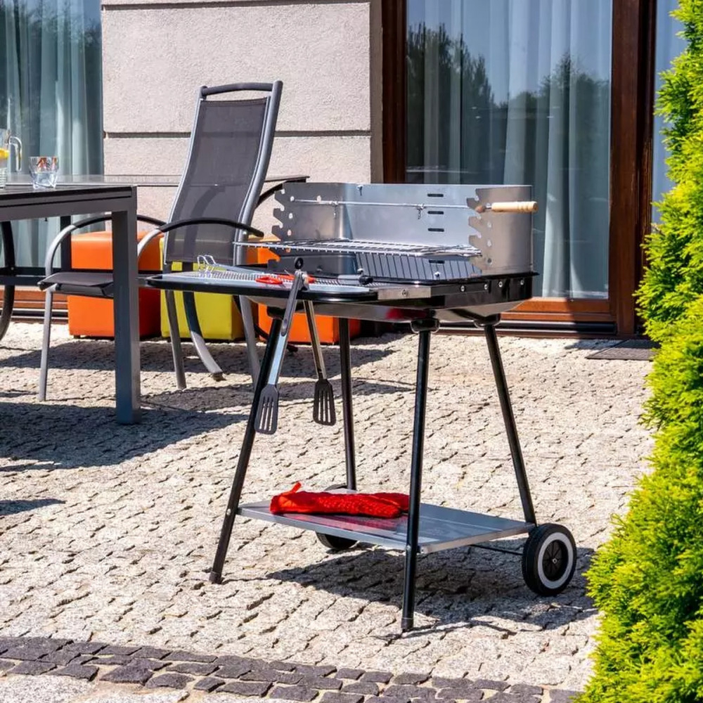 Grătarul cu cărbune are capacitatea de a regla înălțimea grătarului , ceea ce vă permite să controlați timpul de gătire a alimentelor și să le gătiți perfect. Un avantaj funcțional îl reprezintă rafturile inferioare și frontale, care facilitează grătarul și depozitează accesorii practice.