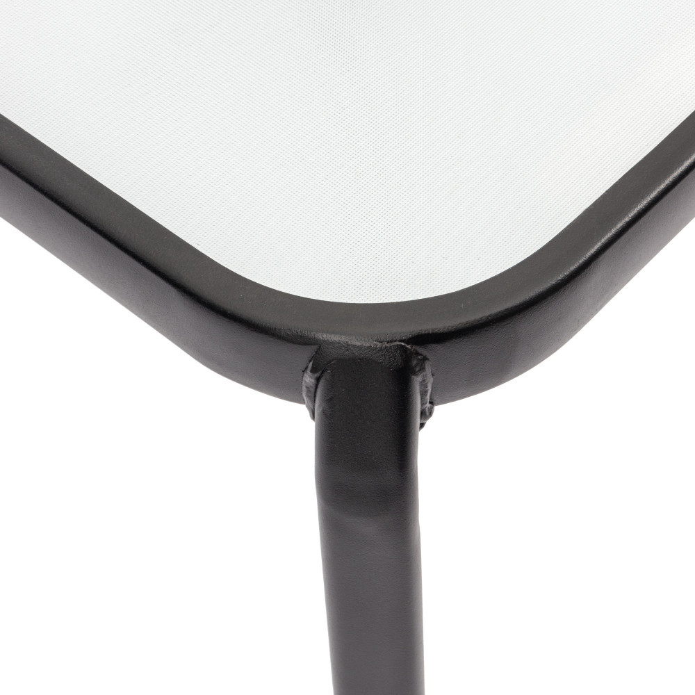 Structura sa din oțel vopsit și blatul din sticlă securizată îl fac extrem de durabil. Curățarea este ușoară, ștergeți doar cu o cârpă umedă. Dimensiuni (l x l x h): 40 x 40 x 43 cm. Material: oțel vopsit / sticlă securizată