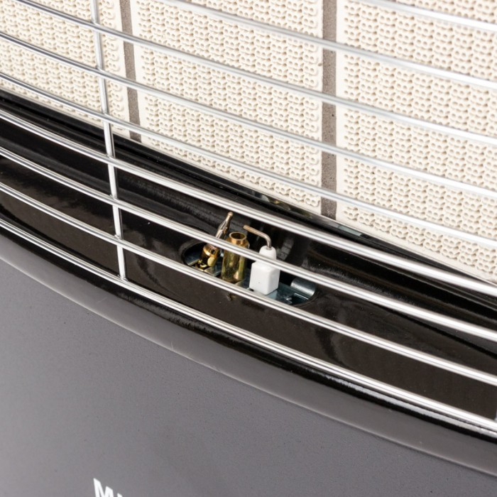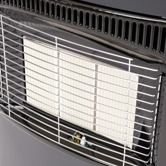 Încălzitorul cu gaz are un raft pentru butelie și un mâner pentru a preveni căderea buteliei în timpul transportului. Datorită eficienței sale, o singură butelie poate încălzi timp de până la 110 ore.