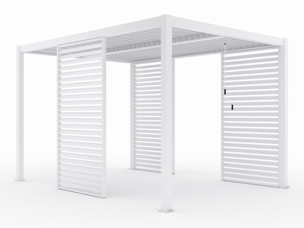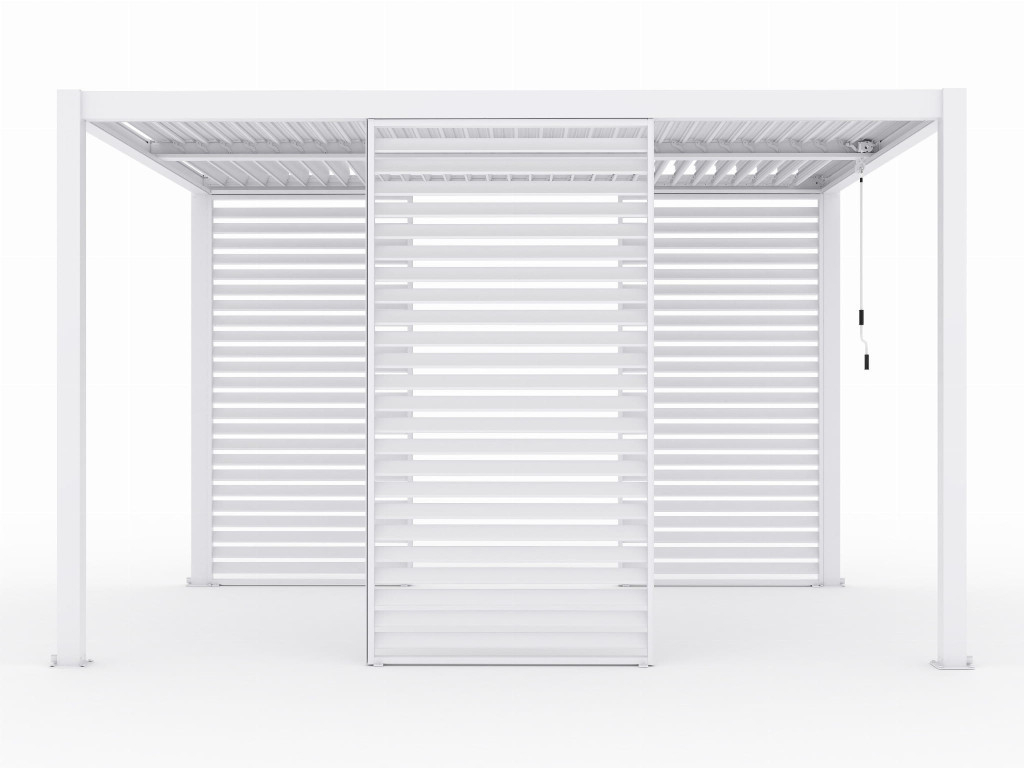 Peretele lateral al pergolei oferă multe opțiuni de amenajare. În funcție de nevoile dumneavoastră, puteți instala unul sau mai multe panouri pentru a personaliza aspectul și funcționalitatea pergolei în funcție de nevoile dumneavoastră individuale . Panoul mobil al obloanei este reglabil liber, astfel încât umbrirea zonei de relaxare poate fi ajustată în funcție de nevoile dumneavoastră.