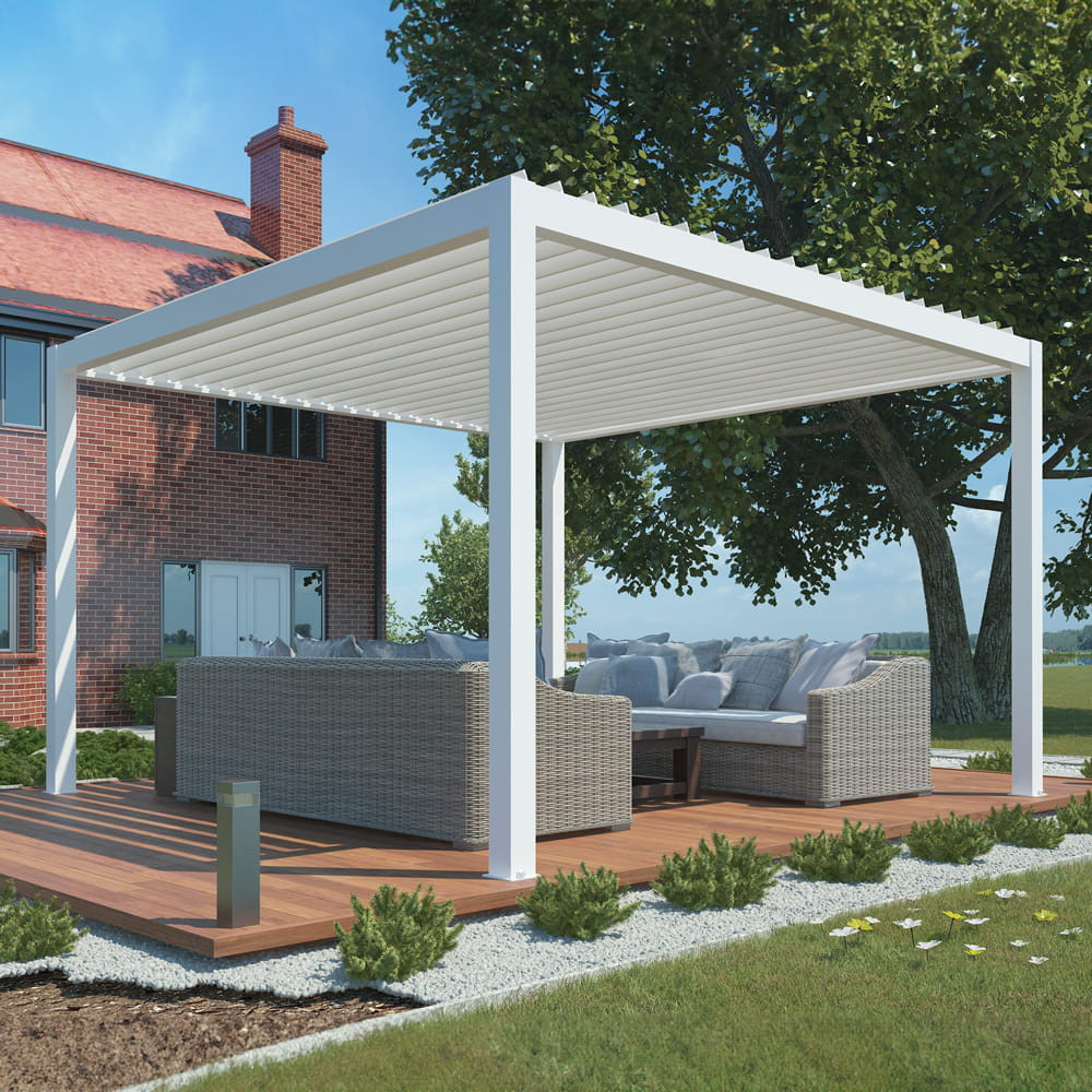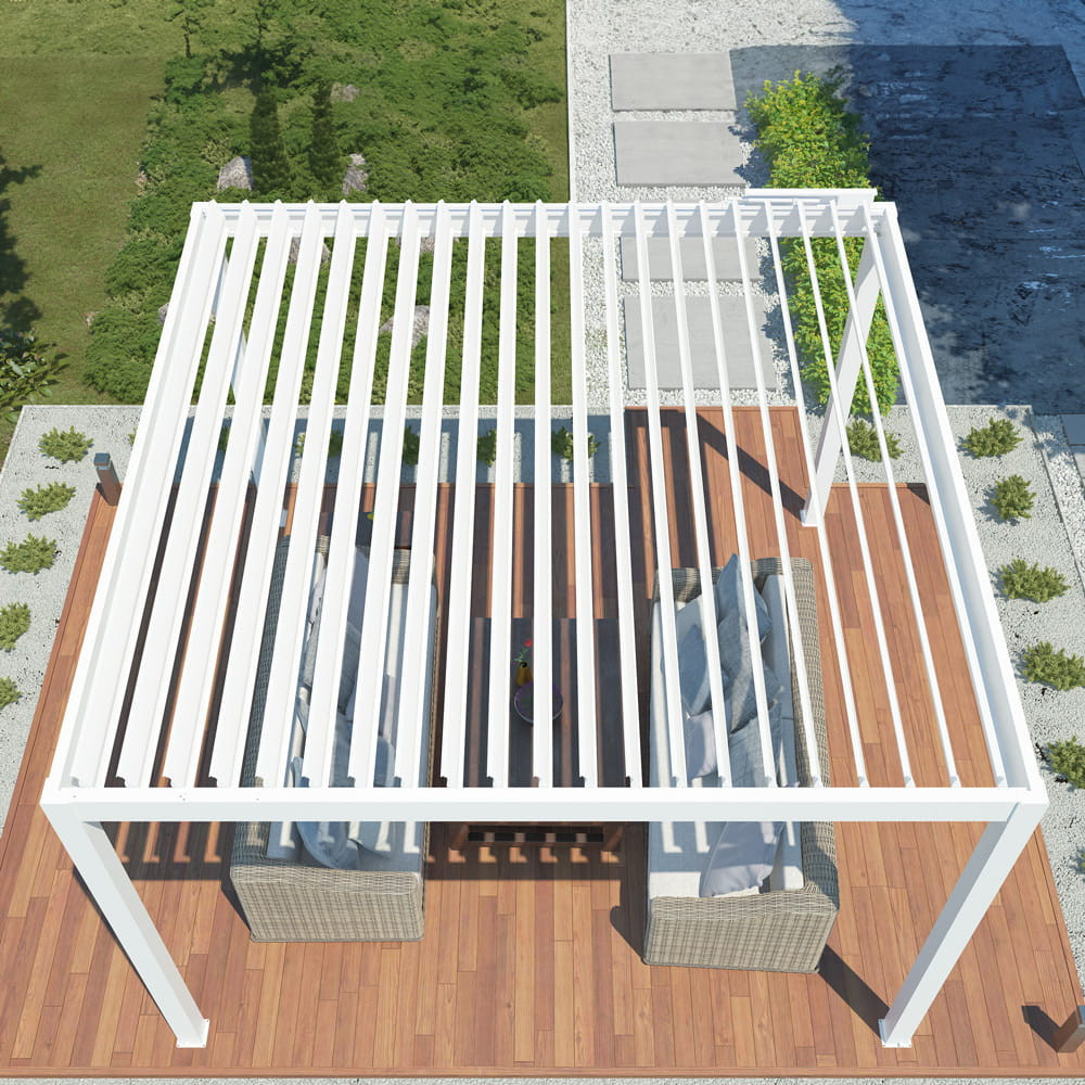 Avantajul unei pergole de grădină este acoperișul care se deschide electric , ceea ce este foarte convenabil pentru utilizarea zilnică. Acoperișul poate fi controlat convenabil datorită telecomenzii. În acest fel, poți adapta cu ușurință umbrirea zonei tale de relaxare la nevoile tale. Acoperișul protejează eficient împotriva luminii solare excesive, dar și de ploile ușoare de vară.