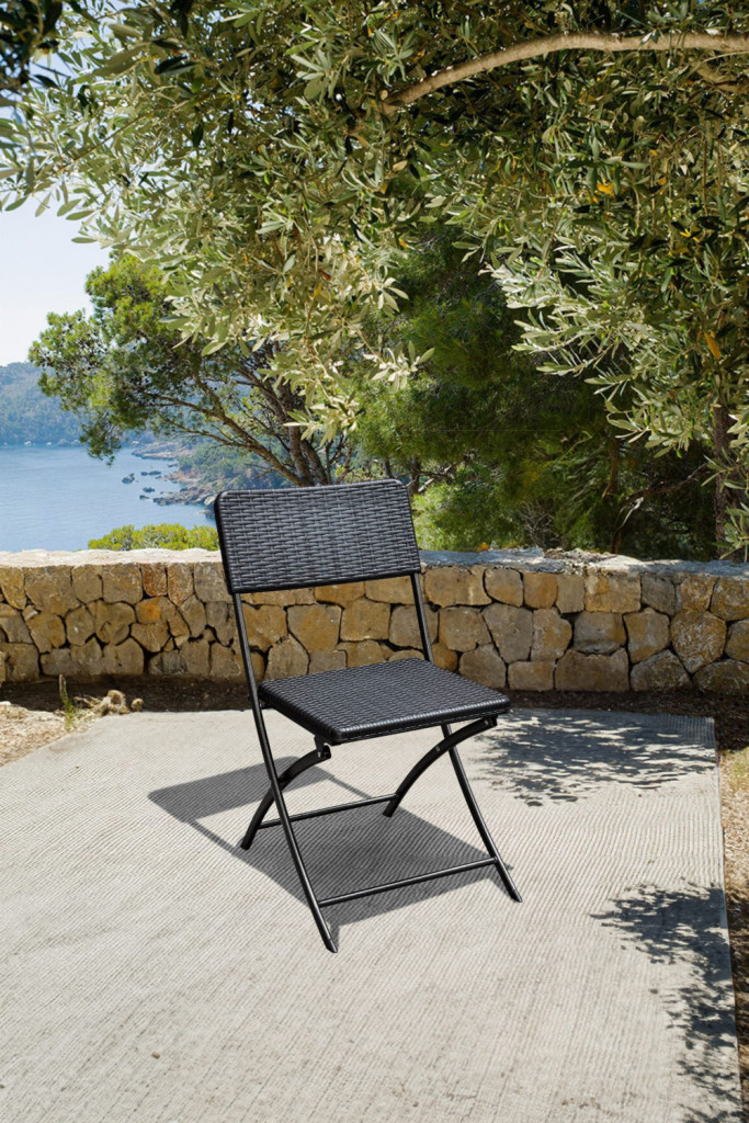 Șezutul scaunului pliant Vivid este fabricat din polietilenă cu efect de ratan, de culoare neagră. Cadrul scaunului de grădină este realizat din țevi de oțel . Datorită materialelor folosite, scaunul pliant poate fi mutat cu ușurință oriunde.