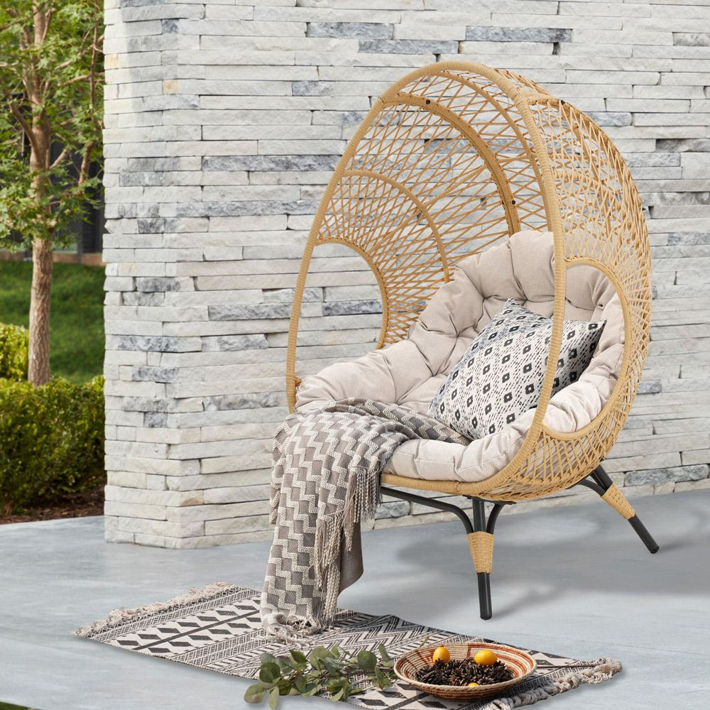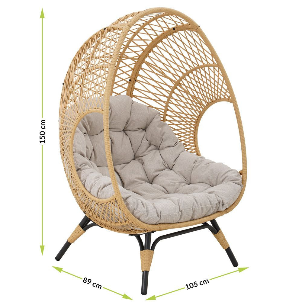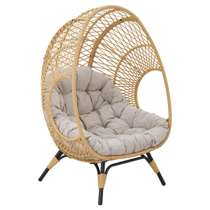 Fotoliul de grădină este conceput pentru a oferi cel mai înalt nivel de confort pentru relaxare. Coconul fotoliului este profilat corespunzător și dotat cu o pernă mare și moale . Datorită acestui fapt, multe ore de relaxare în fotoliu vor fi o plăcere. Mobilierul este caracterizat de un design elegant care se încadrează cu succes în stilurile estivale, boho și clasic. Fotoliul în culoarea naturală poate fi amplasat pe terasă și în grădină . Poate fi folosit perfect și într-un living elegant sau într-o cameră de relaxare . Versiunea modernă a fotoliului în picioare Cocoon face trimitere la mediul natural prin caracterul său, fiind perfectă pentru amenajările în aer liber.