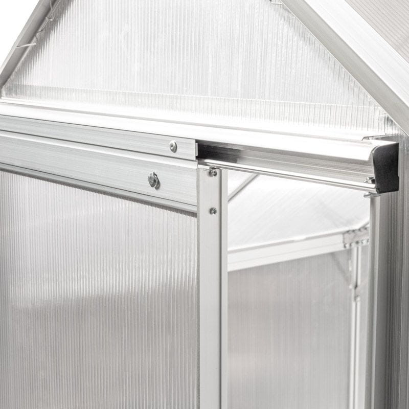 Serele moderne din policarbonat au uși glisante care permit utilizarea la maximum a spațiului interior. Avantajul său îl reprezintă cele două luminatoare, care asigură circulația aerului , oferind astfel o ventilație eficientă și un control al temperaturii. Înălțimea adecvată a serei de grădină din policarbonat permite lucrul liber.