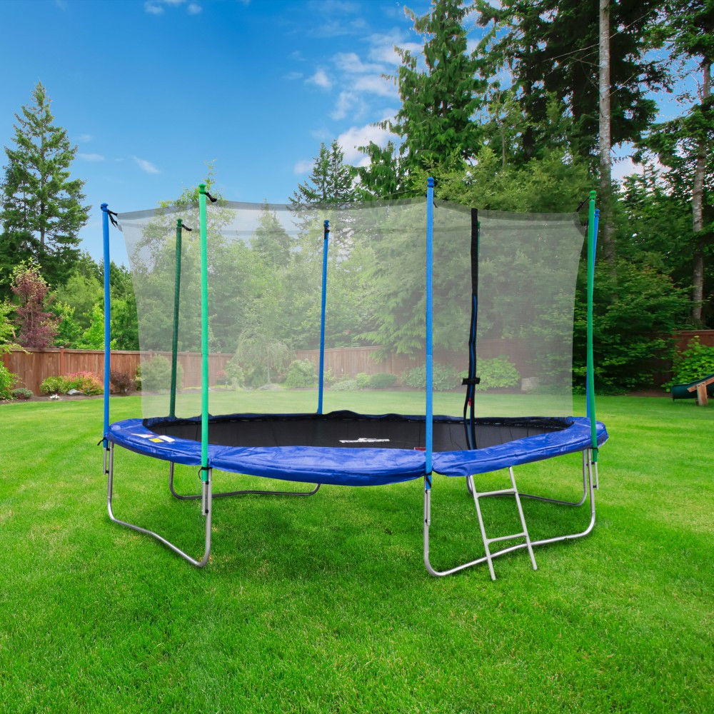 O trambulină de grădină cu plasă este un loc sigur pentru copii