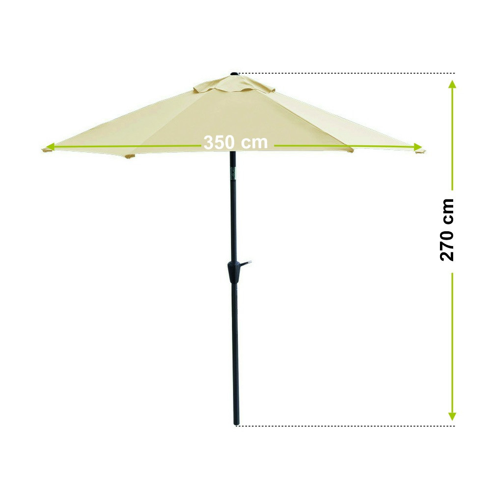 Stâlpul central al umbrelei mari de grădină este fabricat din oțel. Produsul are o copertină largă , ranforsată cu o structură cu 6 nervuri .