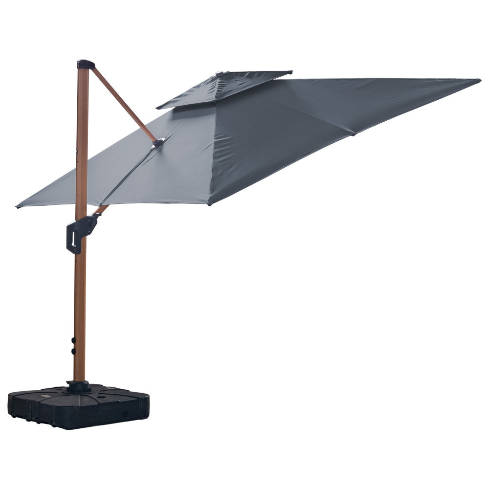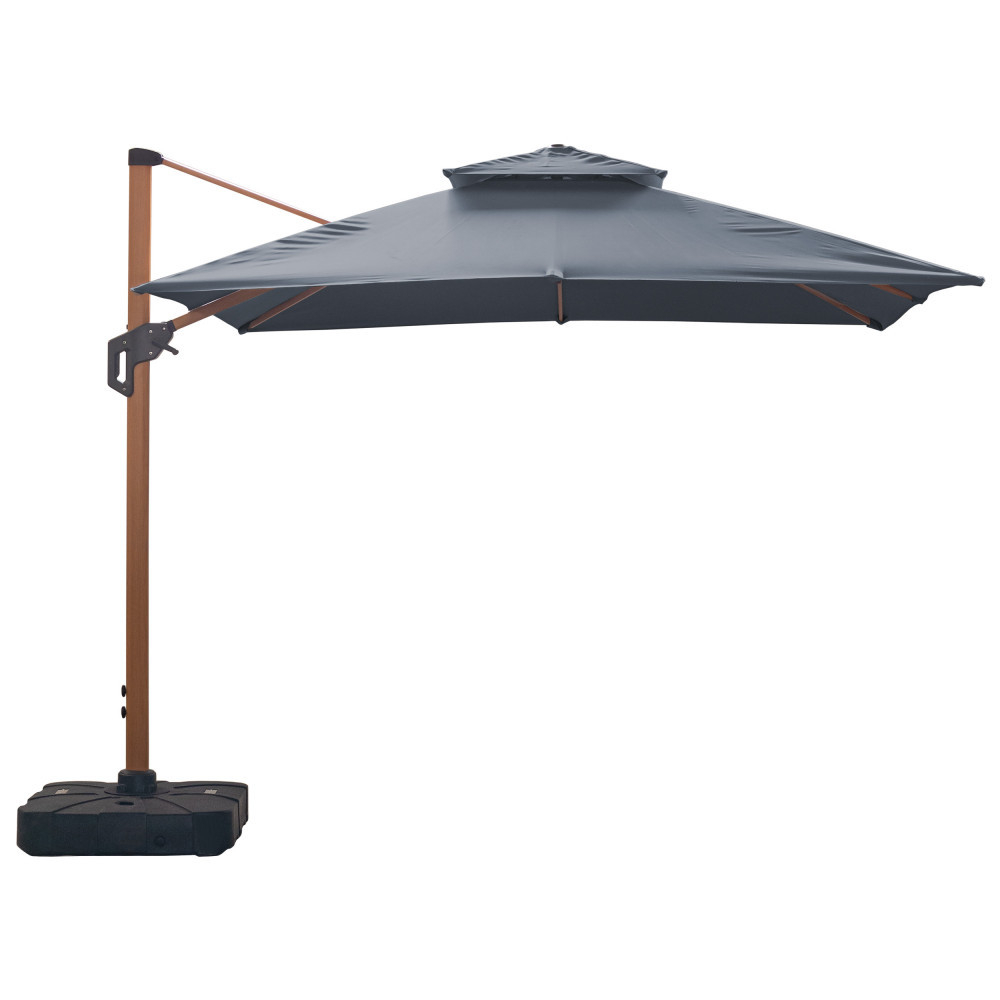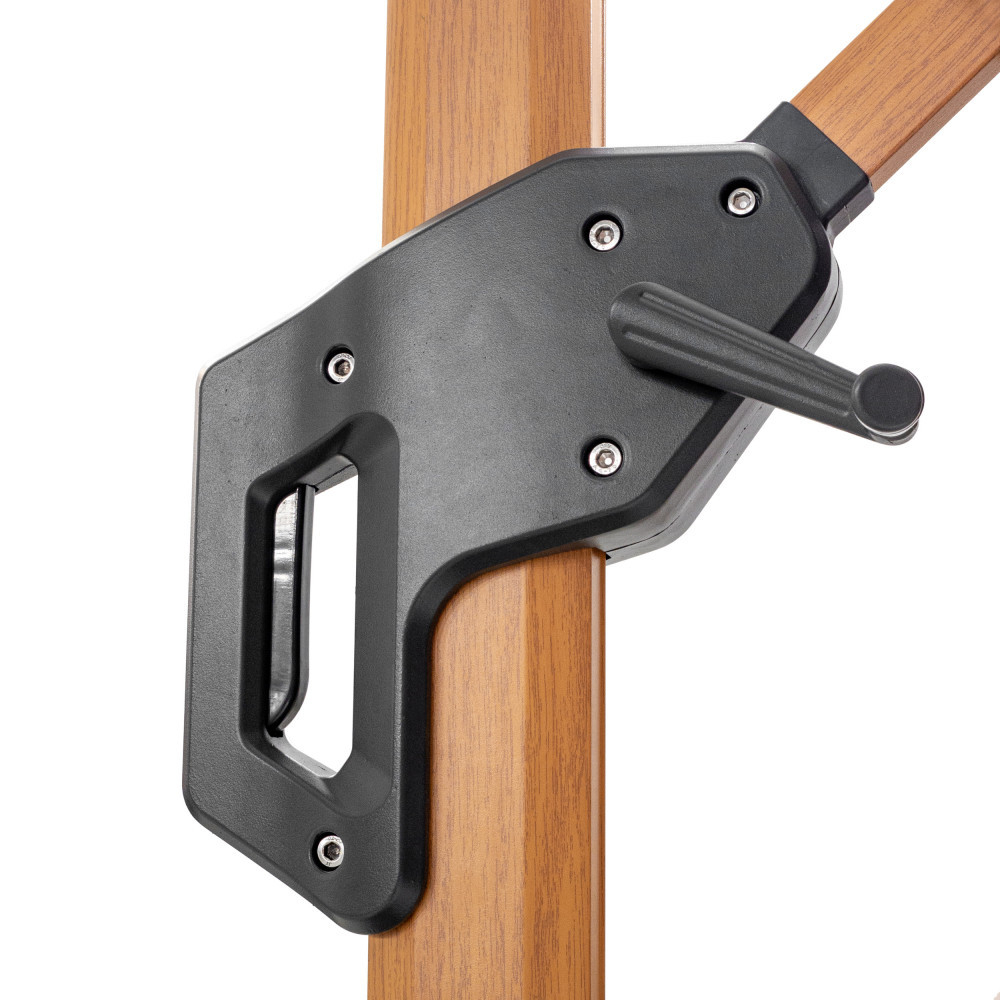 Culoarea antracit atemporală vă va înveseli perfect grădina. Materialul acoperișului este poliester rezistent și de înaltă calitate, 250 g/m2, cu un strat suplimentar de PA, ceea ce îl face nu doar impermeabil, ci și rezistent la UV. Bara transversală din oțel garantează stabilitatea și rezistența umbrelei. Mânerul mecanismului de pliere este fabricat din aliaj de aluminiu, iar mecanismul manivelă facilitează deschiderea și închiderea umbrelei. Un alt avantaj este posibilitatea de a regla unghiul acoperișului și posibilitatea de a roti parasolarul, folosind un mecanism rotativ situat în bază, pe un unghi de 360°. Roma M va deveni o parte integrantă a grădinii tale în zilele călduroase de vară. Ușor de întreținut și ușor de depozitat.