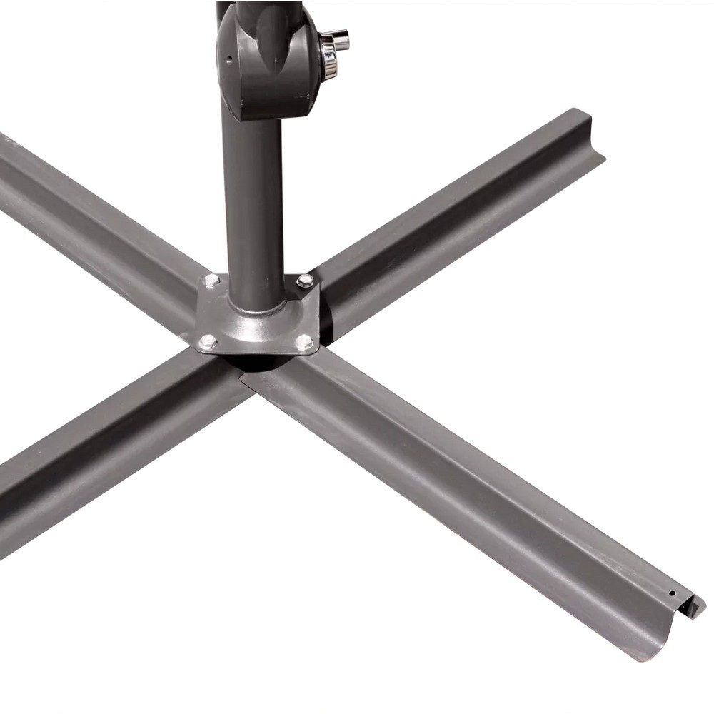 Stabilitatea unei umbrele de grădină este influențată semnificativ de baza în cruce . Pentru confortul dumneavoastră, este atașat un mâner pentru a plia și deplia produsul. Copertina de deasupra suportului vă permite să o poziționați oriunde și să alegeți orice locație de umbrire în funcție de unghiul luminii solare. Gură de aerisire a copertinei permite circulația aerului. Umbrela Garden Hero vă permite să creați un spațiu umbrit pentru relaxare, luarea mesei împreună sau întâlnirea cu cei dragi. Umbrelele de grădină sunt un element esențial al echipamentelor de grădină. Acestea oferă o protecție excelentă atât împotriva soarelui, cât și a ploii de vară. Datorită diametrului crescut al umbrelei, trebuie adăugată o greutate suplimentară la bază.