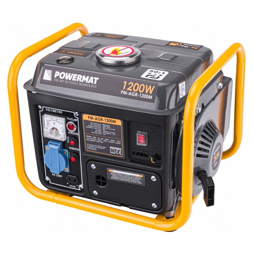 Generatorul produce 230 V CA (1 priză) și 12 V CC (1 priză). Soluția perfectă pentru întreruperile de curent pe teren. Pornirea manuală a unității - cu cablu. Unitatea poate fi utilizată în lucrări DIY, construcții pe parcele și grădini cu scule electrice, pompe și iluminat.