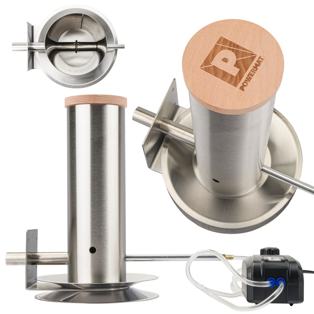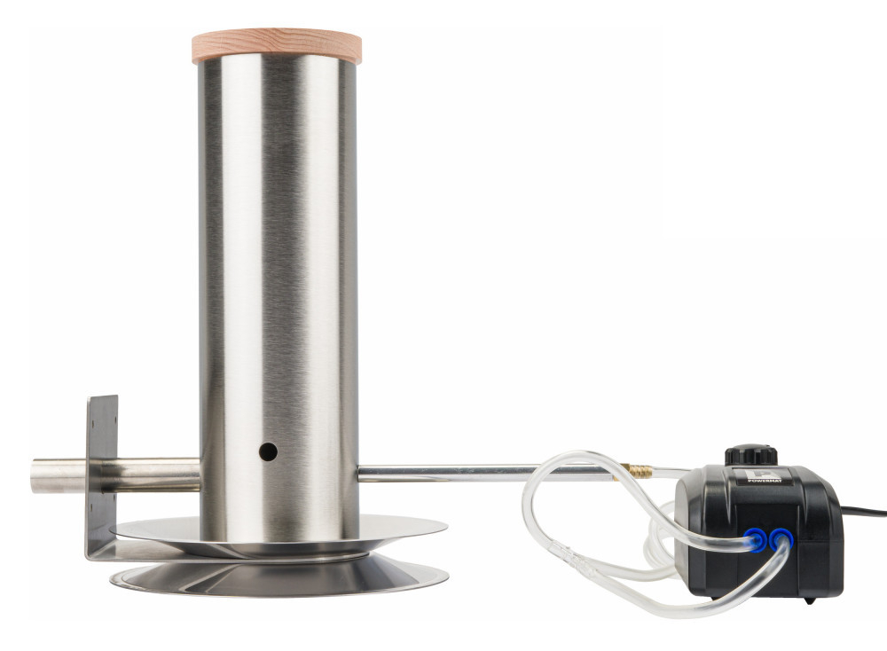 - Reglarea precisă a cantității de fum produs permite evitarea acidificării excesive a produselor. Pompa este conectată prin intermediul unui furtun la o țeavă specială integrată prin care se furnizează aer.