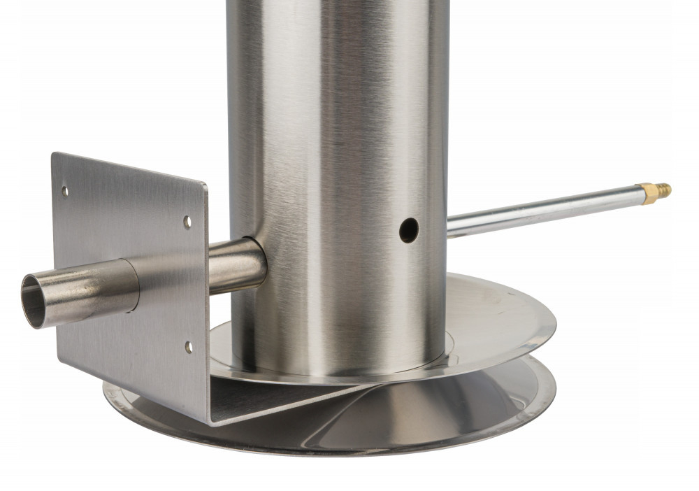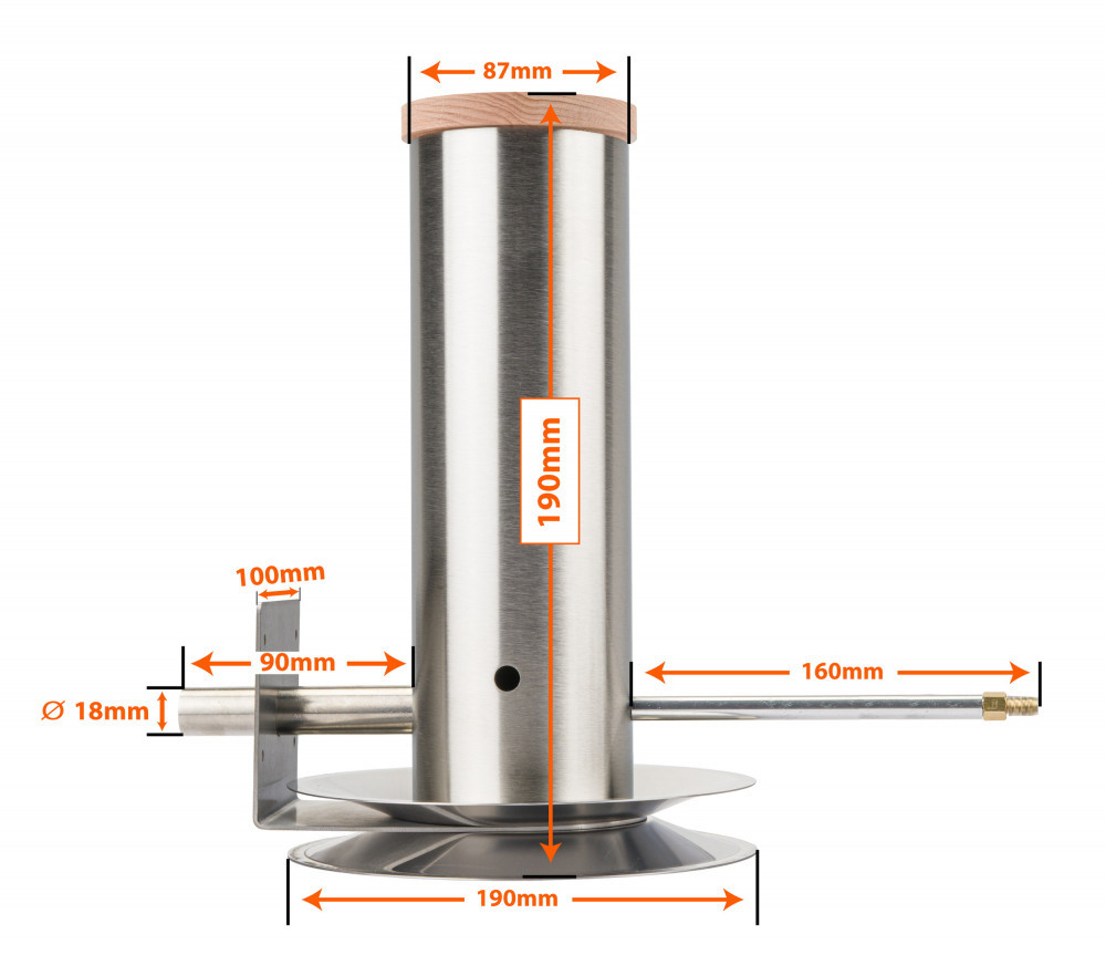 - Duza inovatoare a generatorului de fum este mai scurtă decât modelele convenționale și are o înclinare pe două fețe. Acest lucru permite un flux mai bun al fumului în afumătoare și protejează duza de o posibilă înfundare a așchiilor de lemn.
