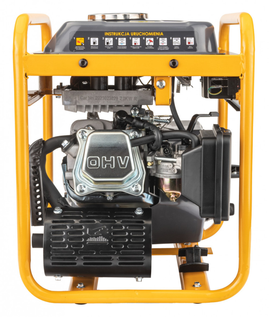 Generatorul produce curent de 230 V (1 priză) . Soluția perfectă în caz de pană de curent pe teren. Aparatul are un senzor de nivel al uleiului care oprește automat motorul dacă nivelul uleiului este prea scăzut. Pornirea manuală a unității - folosind o frânghie. Unitatea este utilizată în lucrări meșteșugărești, construcții pe parcele și în grădini cu scule electrice, pompe și iluminat.
