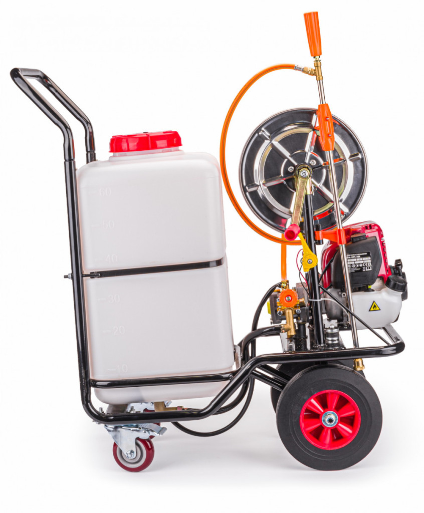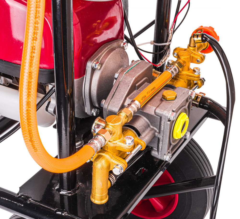 Motorul eficient în patru timpi oferă o presiune reglabilă ridicată, datorită căreia pulverizatorul are o rază de acțiune suficient de lungă.