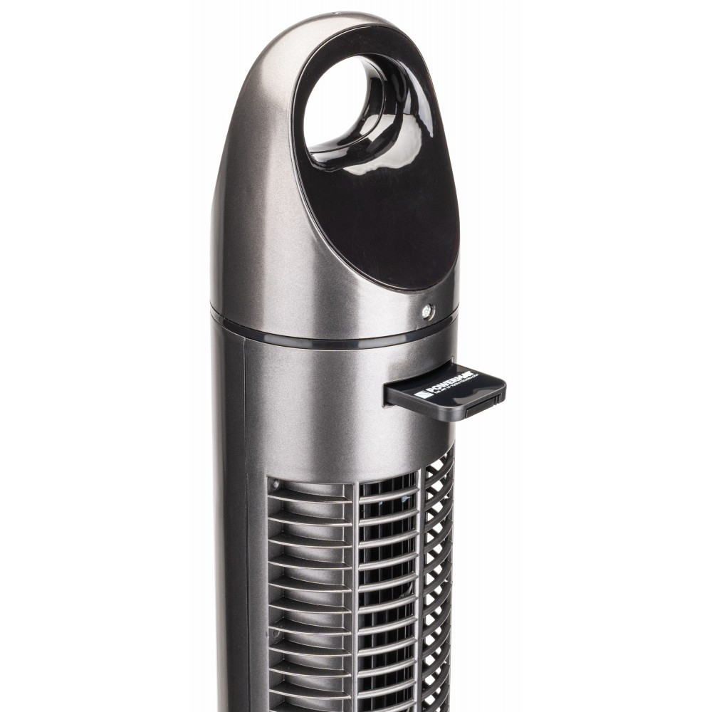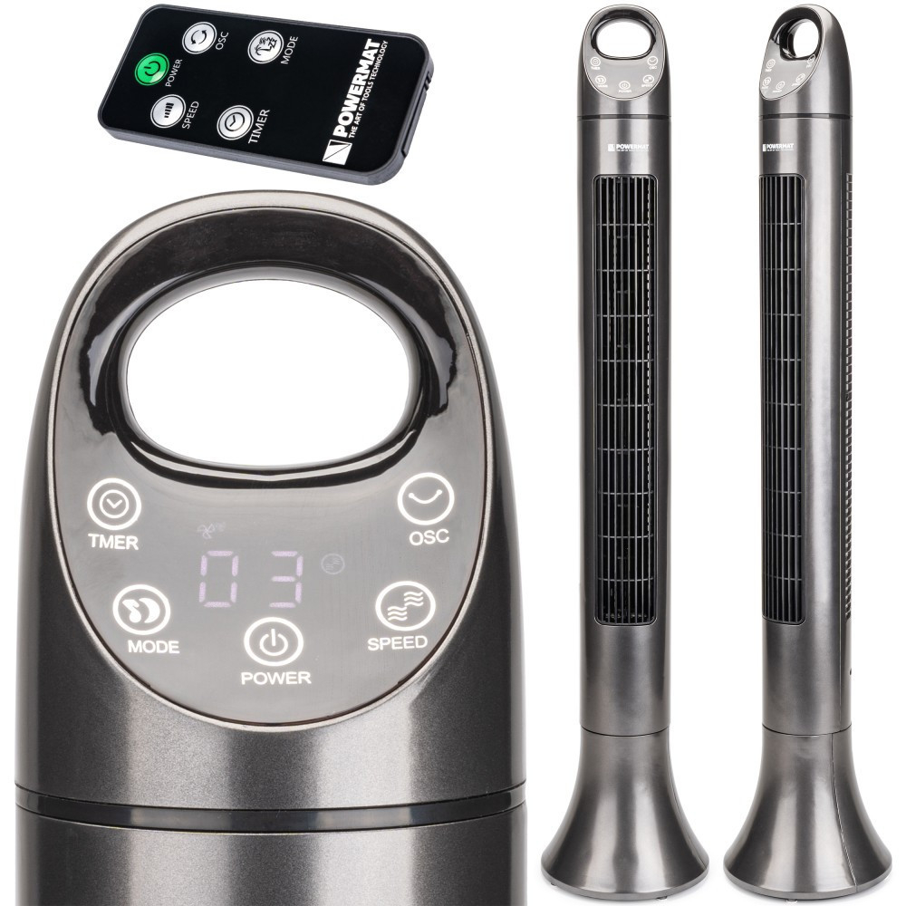 marca POWERMAT , Datorită dimensiunilor ventilatorului coloană (turn) tip Satin Tower-80 (înălțime 98 cm), forța de suflare este mai mare la viteze de rotație mai mici. Datorită acestor dimensiuni, ventilatorul este mai silențios decât versiunile mai mici.