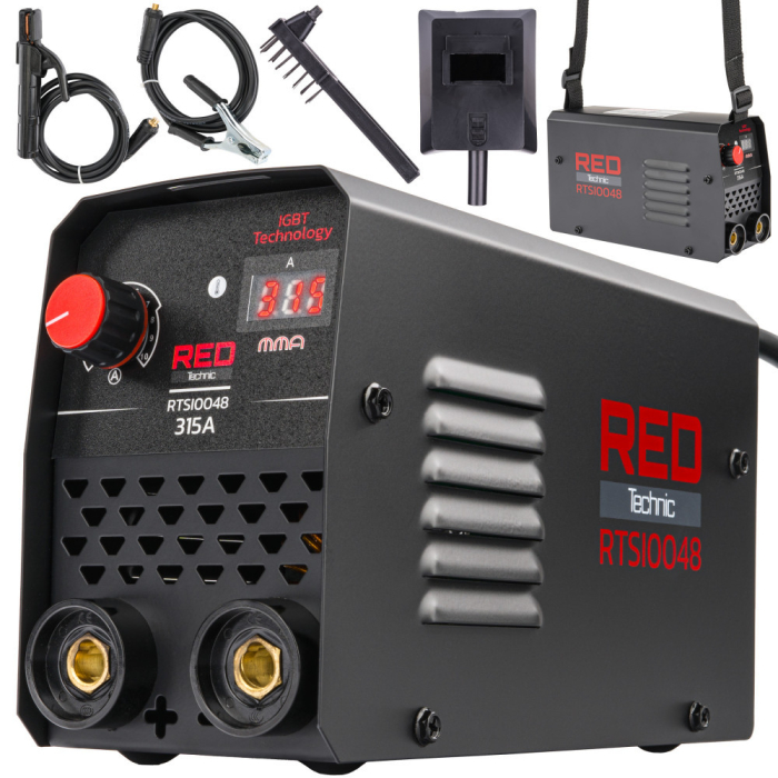 Modelul RTSI0048 este un aparat de sudură cu invertor, al cărui design se bazează pe tranzistoare IGBT eficiente. Este echipat cu un afișaj LCD transparent care afișează curentul de sudură setat cu butoanele.