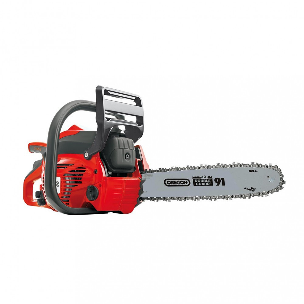 Ghidajul lanțului Oregon autentic de 40 cm, de lungă durată, vă permite să avansați rapid, cu manevre și manevrabilitate bune. Lanțul Oregon de 3/8" poate fi tensionat și schimbat fără unelte datorită tensionatorului rapid - iar lubrifierea lanțului poate fi reglată cu ușurință. Caracteristicile ușor de utilizat, cum ar fi filtrul de aer înlocuibil fără unelte și deschiderea ușoară a capacului rezervorului, susțin ușurința de utilizare în aplicațiile practice.