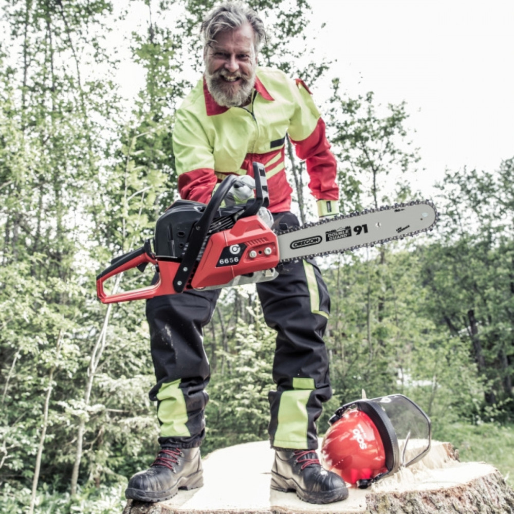 Ghidajul lanțului Oregon original de 38 cm, cu durată lungă de viață, vă permite să avansați rapid cu o manevrare și o manevrabilitate bune. Întinderea laterală a lanțului cu piulițe fixe pentru o manevrare ușoară. Sistemul electronic de aprindere cu funcția inovatoare a comutatorului cu cheie și ștergătorul Primer și supapa de decompresie garantează o pornire rapidă și sigură. Datorită amortizării suplimentare a vibrațiilor și a unui mâner cu ergonomie optimizată, puterea de acționare este transferată ghidajului lanțului și lanțului cu puține vibrații, ceea ce facilitează obținerea unor rezultate de tăiere precise, fiind în același timp ușor de manevrat. Un plus suplimentar este filtrul de aer din hârtie cu suprafață mare. Iar carcasa robustă asigură o durată lungă de viață. Alte caracteristici cheie includ un regulator al volumului de ulei, încălzirea aerului pentru funcționarea pe timp de iarnă și o flanșă de tăiere pentru un control mai bun în timpul tăierii.
