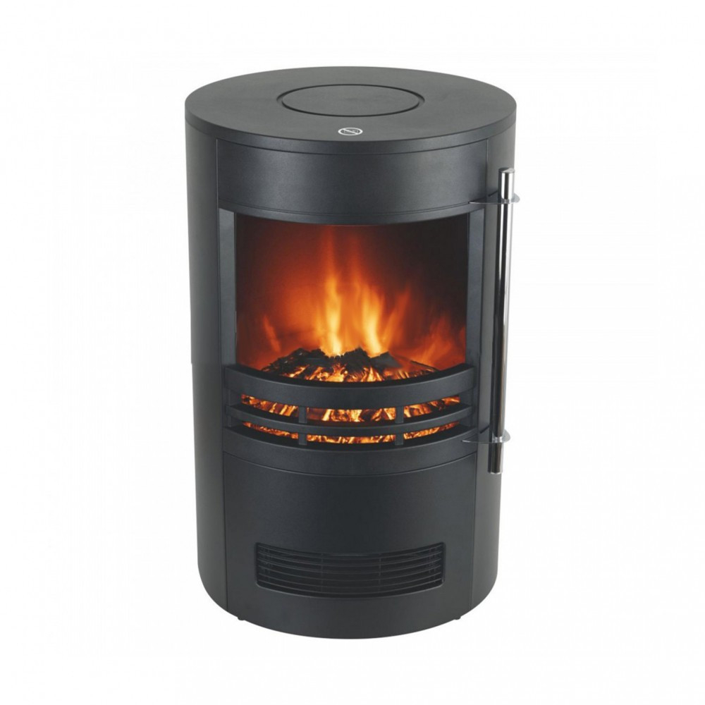 Șemineu electric, cu suport, negru, cilindric