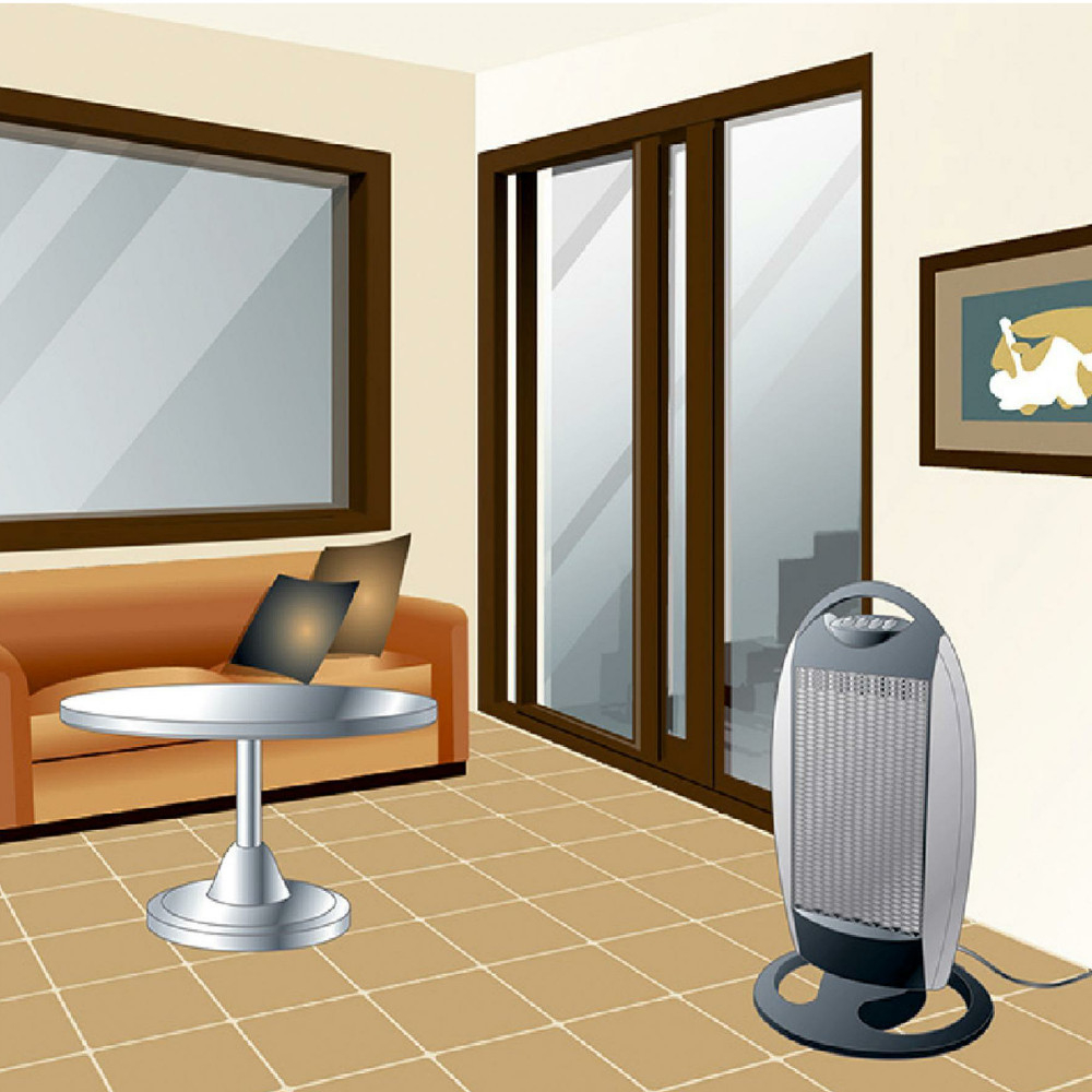 Încălzitorul este extrem de sigur, deoarece se oprește imediat în cazul unei răsturnări și are, de asemenea, o oscilație comutabilă. Dimensiuni: 36 x 52 x 26 cm.Încălzitor cu halogen, Produsul este potrivit numai pentru încălzirea camerelor bine izolate sau pentru utilizare ocazională!