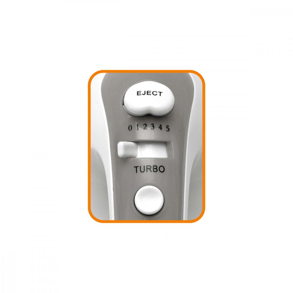 5 viteze\nViteza TURBO, 250 W\nBătaie dublă și brațe de frământare\nButon de eliberare pentru eliberarea convenabilă a mânerelor de amestecare\nCurățare ușoară\nProtecție la supraîncălzire\nLungimea cablului de conectare: 110 cm\nDimensiuni: 14 x 20 x 9 cm