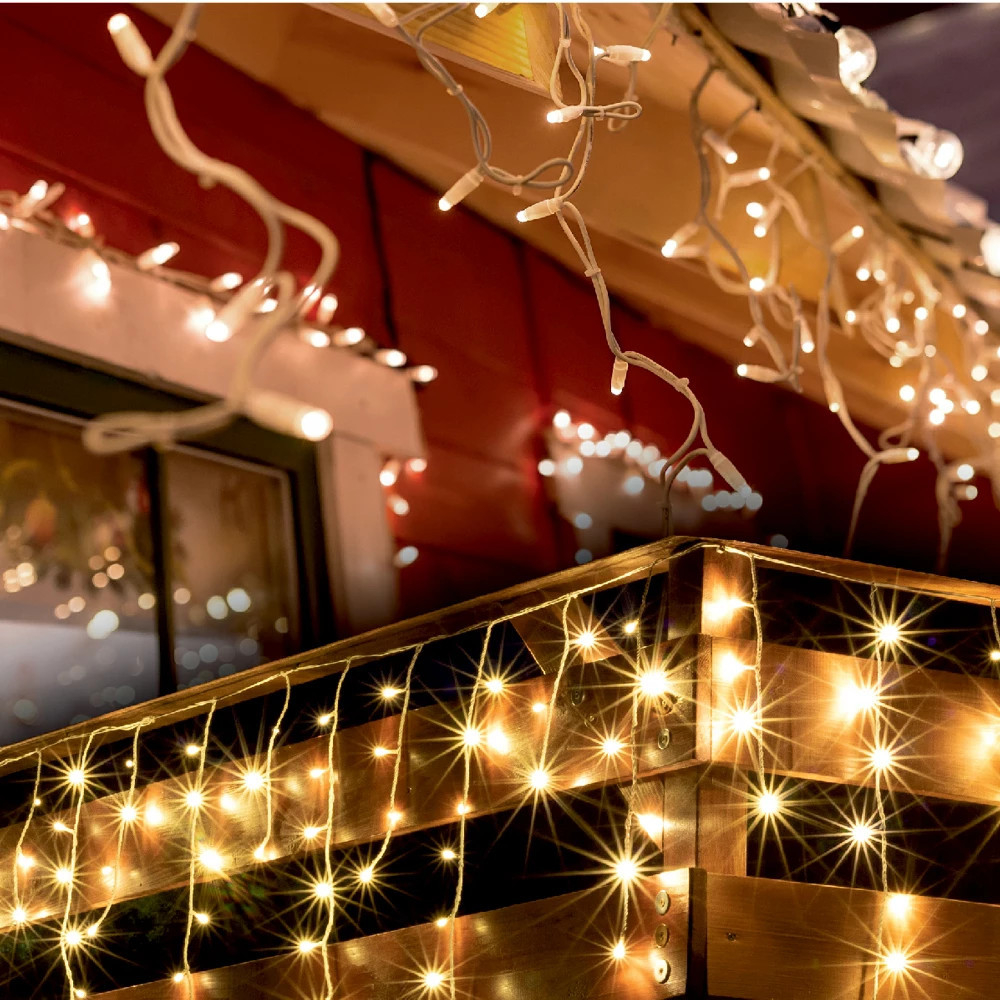 design exterior și interior\n150 LED-uri alb cald\n8 programate, memorie\nmod continuu sau 6h ON/18h OFF repetarea temporizatorului\alimentare: adaptor de alimentare IP44 exterior