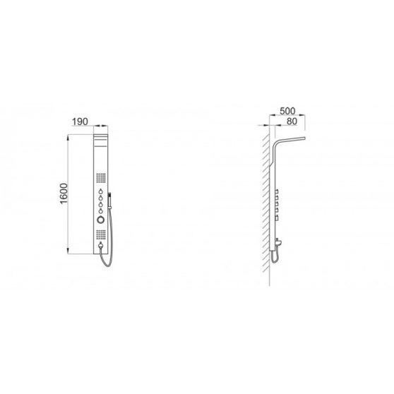 Panoul de duș cu hidromasaj Mariner are un corp din oțel negru lucios, o supapă de amestecare cu cartuș ceramic și un baterie cu monocomandă. Capul de duș cu efect de ploaie tropicală are 50 de duze. Vană de amestec cu inserție ceramică. Baterie termostatică compusă din 4 baterii de duș separate. De asemenea, are un duș manual și o gură de duș pentru cadă. Dimensiuni: 160x19x50 cm.
