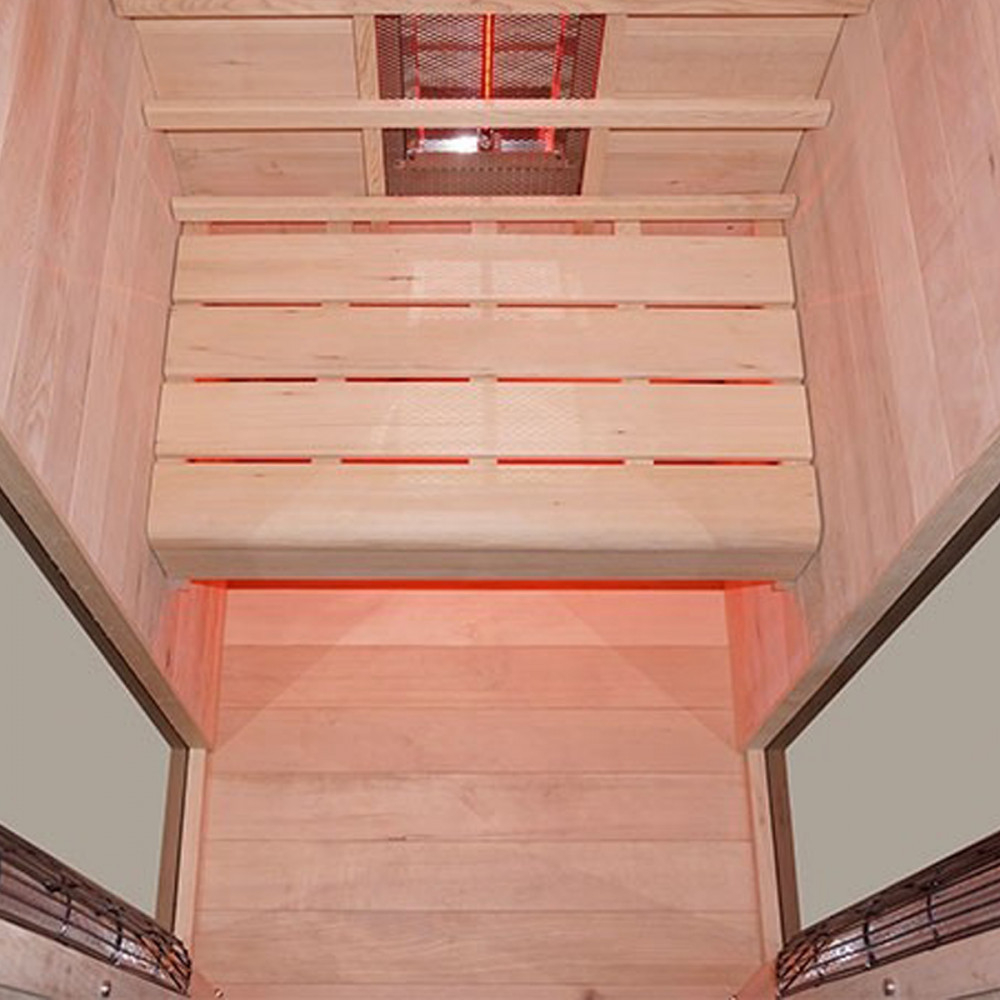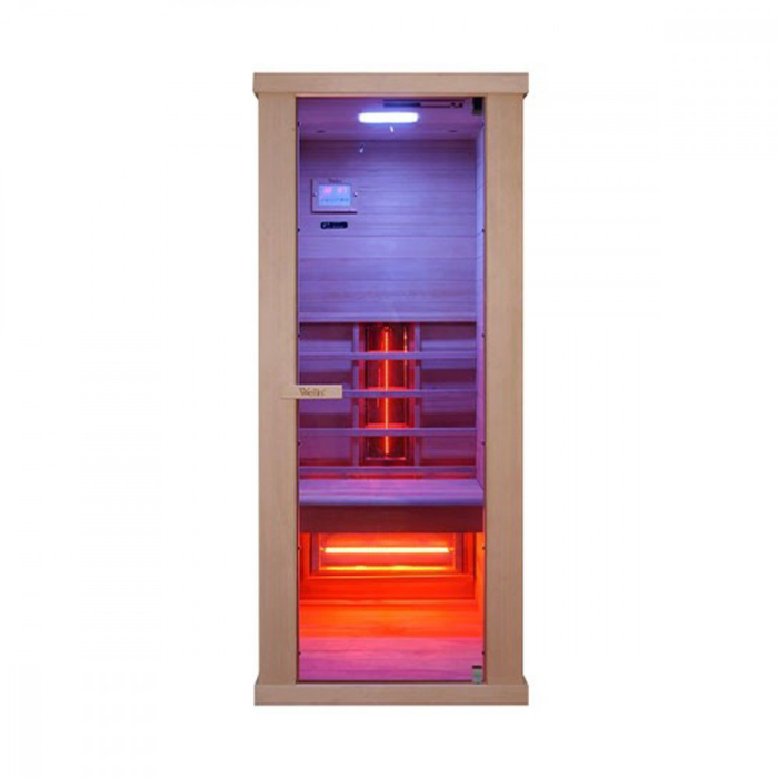 Saunele noastre cu infraroșu emit exclusiv radiații în așa-numitele „raze infraroșii îndepărtate” (FIR), între 1,5 µm și 15 µm. Această regiune este numită și „lumina dătătoare de viață”. Razele infraroșii îndepărtate sunt absorbite mai rapid de piele. Oferă o senzație plăcută de căldură, similară cu cea a unui șemineu. Nu emite raze electromagnetice și ultraviolete dăunătoare, de înaltă frecvență. Razele infraroșii îndepărtate acționează direct asupra corpului utilizatorului de saună, fără a încălzi aerul din jurul acestuia. Locația saunei trebuie aleasă astfel încât să existe cel puțin 20 cm între partea superioară și tavan, deoarece unitatea de control și orificiul de evacuare al ventilatorului de ventilație sunt situate pe acoperiș. Saună cu infraroșu pentru 1 persoană.