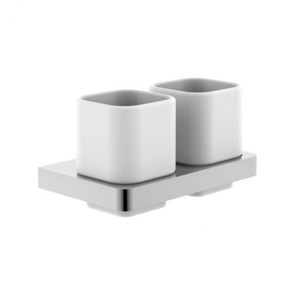 Suport de periuță de dinți de perete, din metal cromat, inclusiv 2 cești ceramice. Suportul pentru pahare Capri arată grozav pe orice perete din baie datorită aspectului său curat și culorii neutre. Dimensiunea produsului: 20 x 9,5 x 10,4 cm