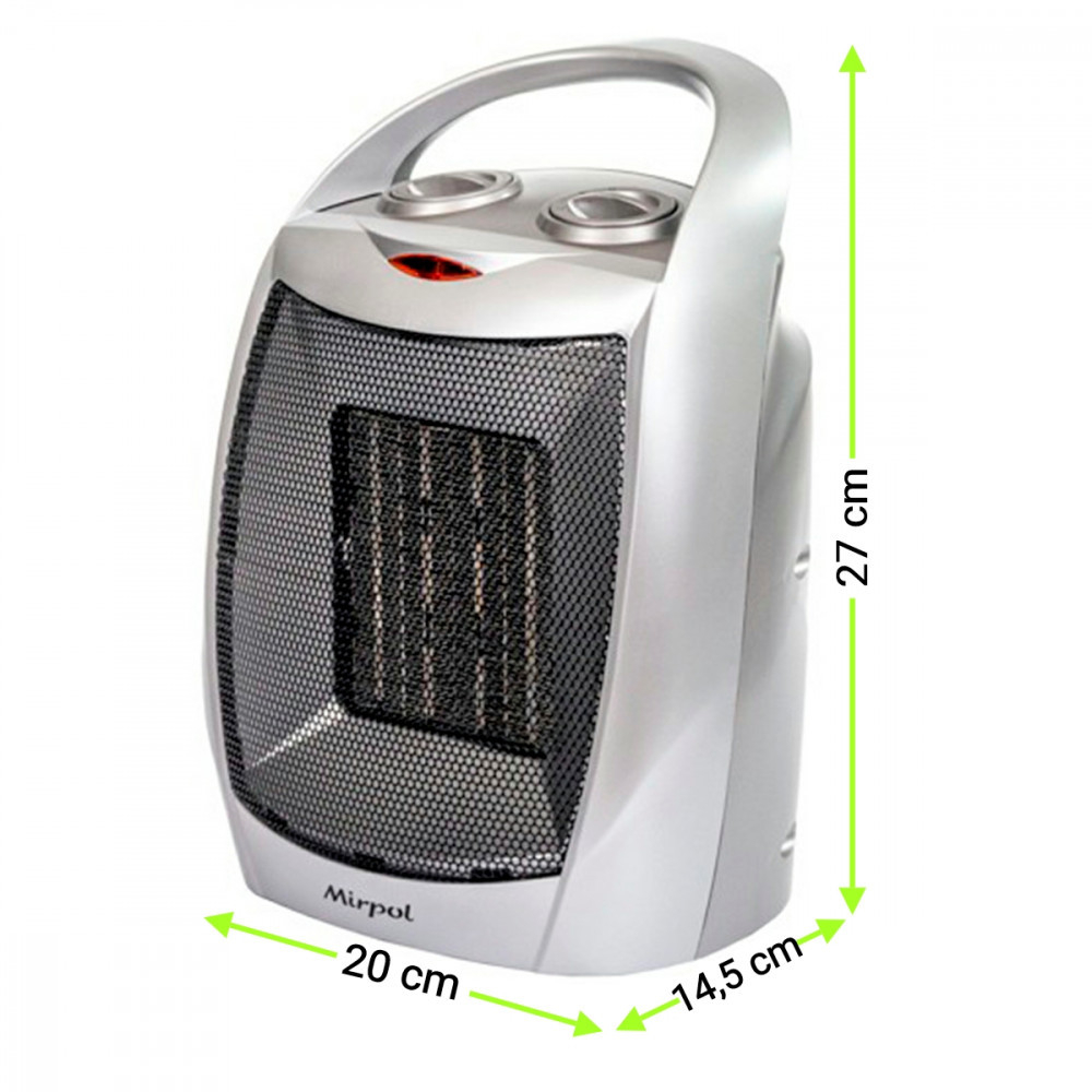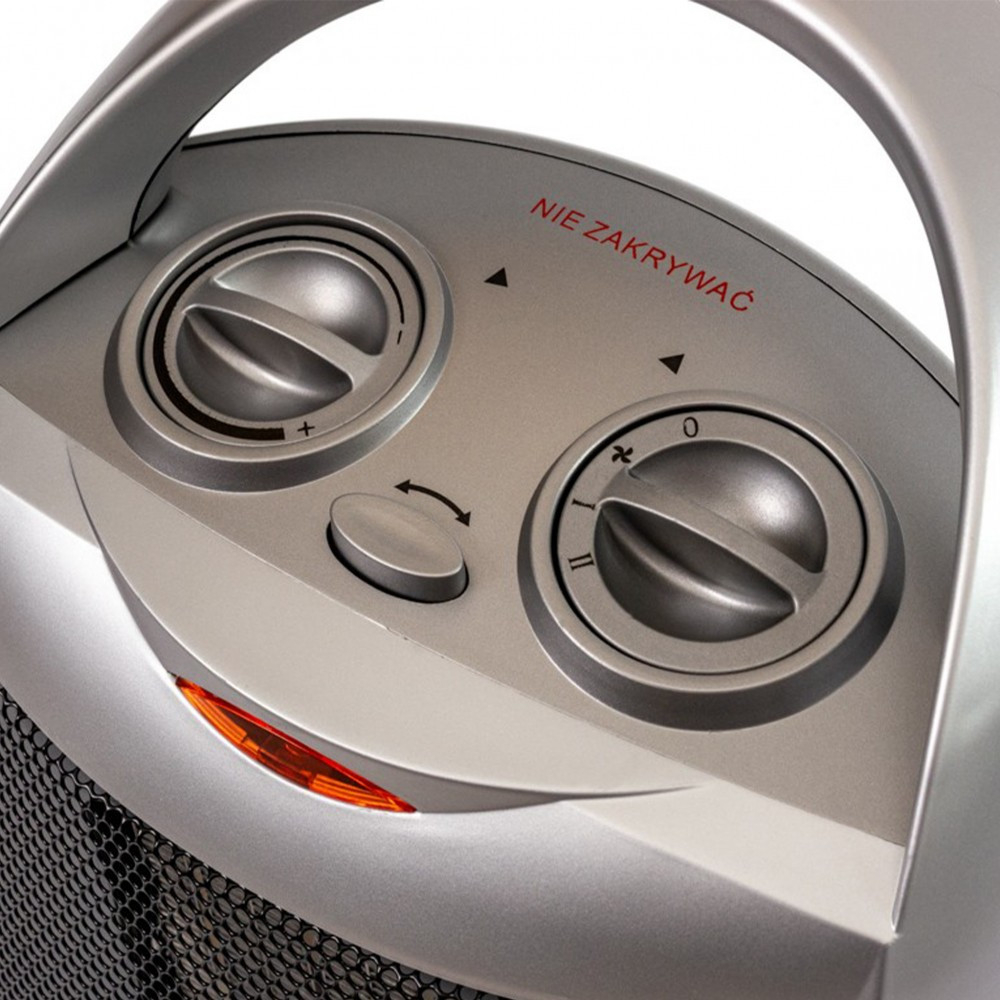 Aerotermul cu ventilator are un control al puterii în 2 trepte (750W / 1500W). Termostatul manual al încălzitorului electric vă ajută să atingeți temperatura dorită. Termoventilatorul electric modern a fost îmbogățit cu funcția de mișcare la dreapta și la stânga, datorită căreia încălzește uniform o suprafață mai mare . Încălzitorul electric este conceput pentru utilizare în spații închise. Poate fi folosit atât în sufragerie, cât și în dormitor. Probabil va funcționa de minune pe o terasă sau într-un camping .