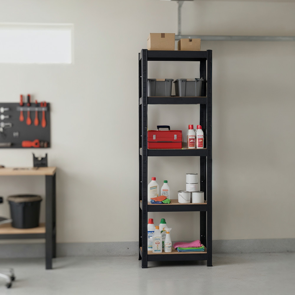 Raftul heavy-duty 180x40x40 cm este ideal pentru spațiile mai mici în care depozitarea stabilă și durabilă este esențială. Datorită designului său compact și îngust, se poate potrivi cu ușurință în garaje, subsoluri sau birouri mai înguste. Fiecare raft al sistemului de rafturi cu 5 rafturi poate susține până la 175 kg, astfel încât întreaga structură poate susține în mod stabil până la 875 kg.