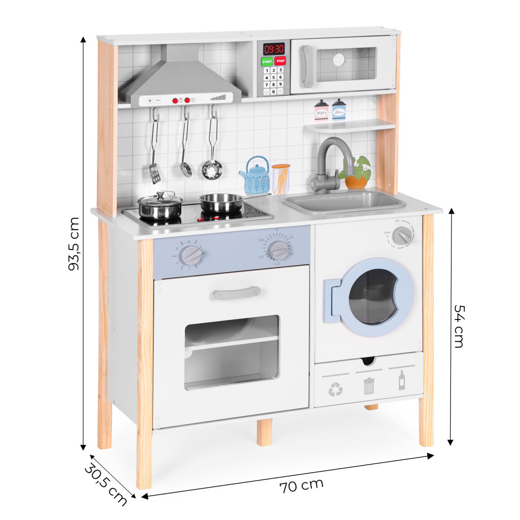 Homelux Bucătărie de jucărie din lemn cu sunete LED cuptor mașină de spălat și accesorii