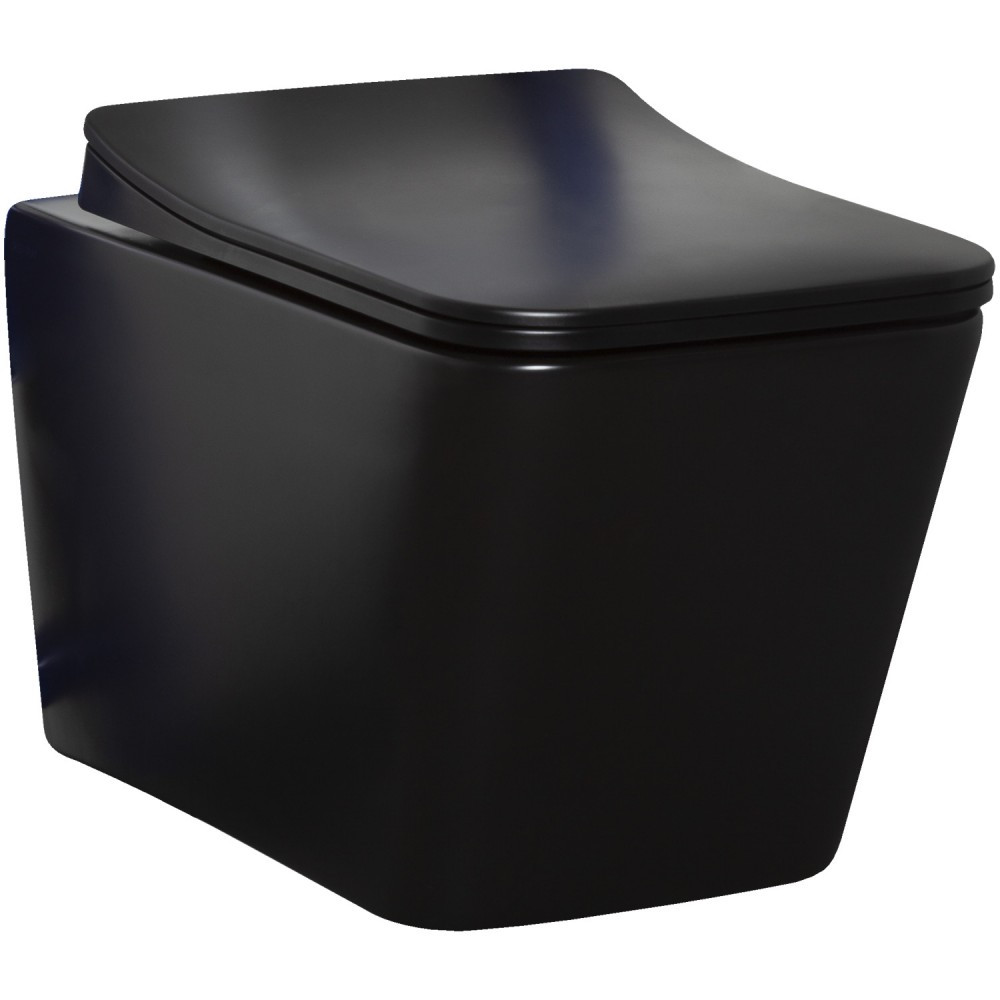 Set rezervor WC încastrat Duofix Basic cu vas WC suspendat Tinos negru și clapetă de acționare Delta neagră